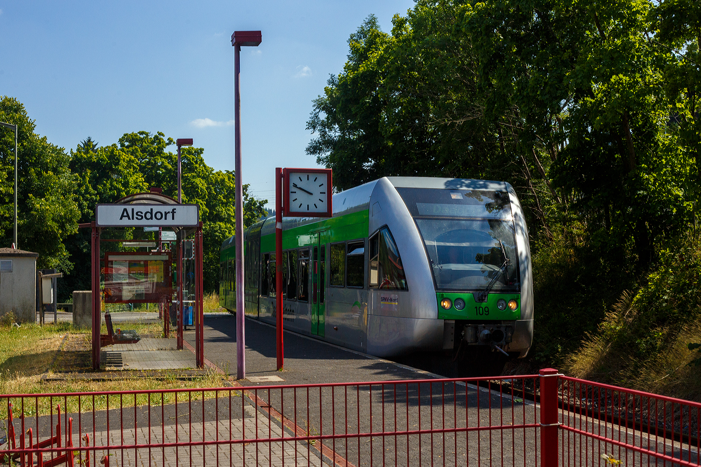Hinten rechts der ehem. Kleinbahnhof Scheuerfeld/Sieg der WEBA (Westerwaldbahn des Kreises Altenkirchen GmbH).