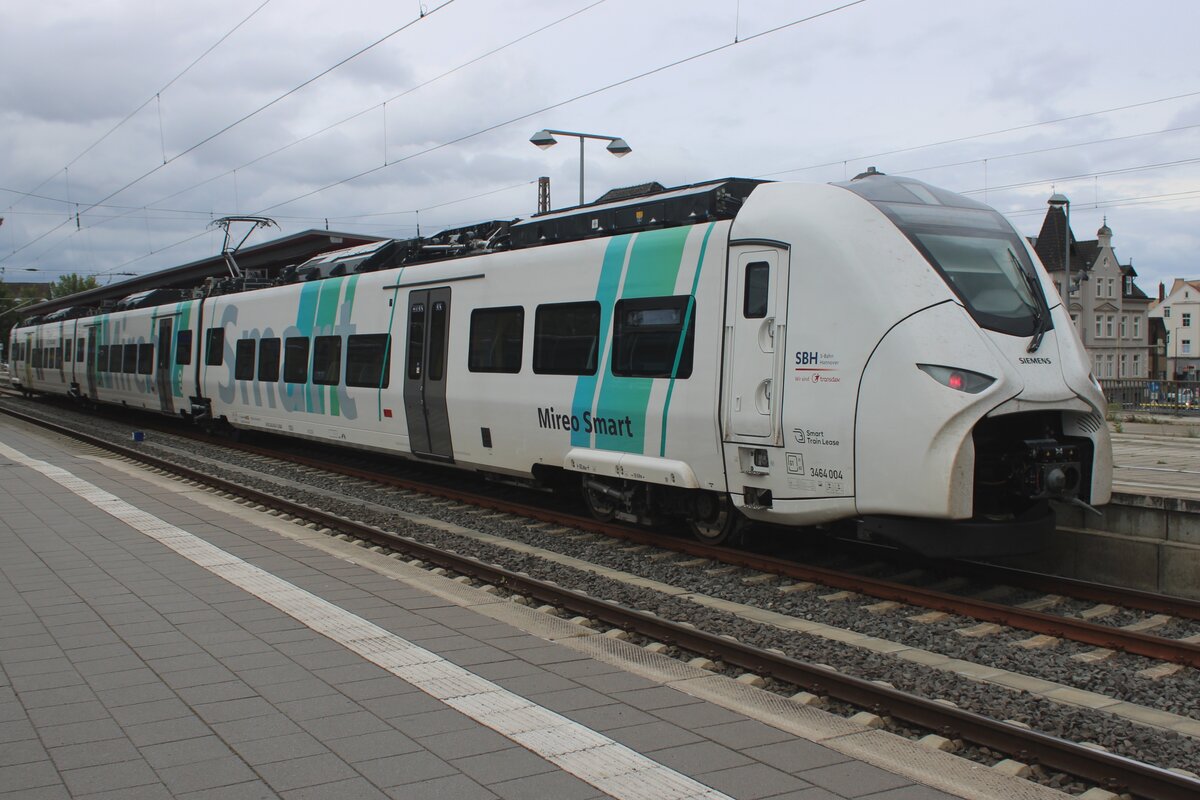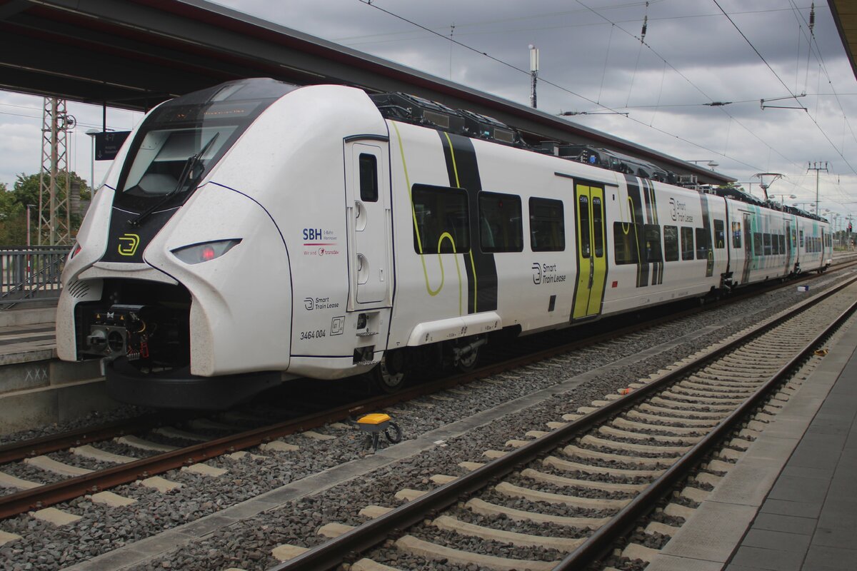 Am grauen 21 September 2025 steht SBH 3464 004 während ein Probebetrieb in Celle.