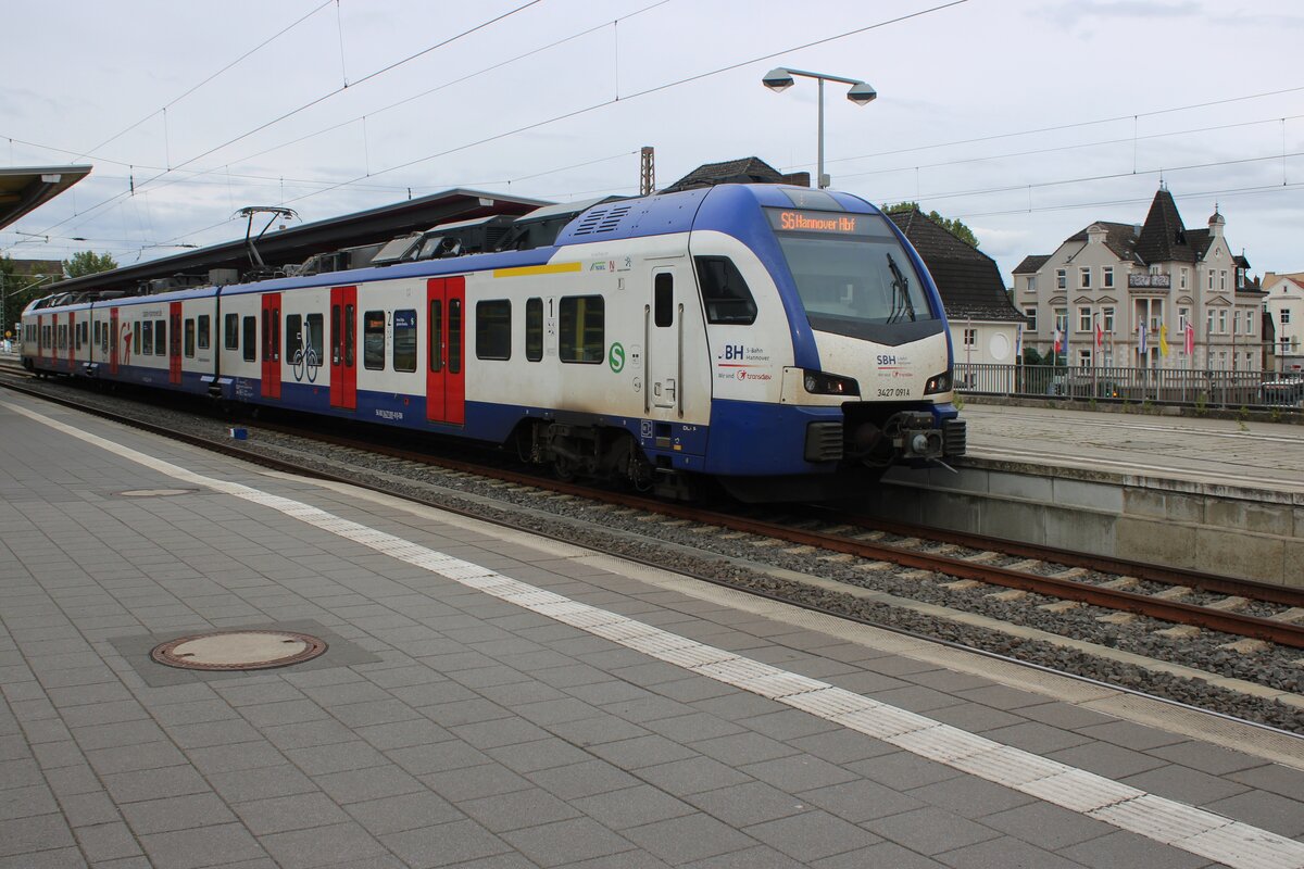 Hannover S-Bahn 3427-076 steht am 9 Juni 2022 in Hannover Hbf.