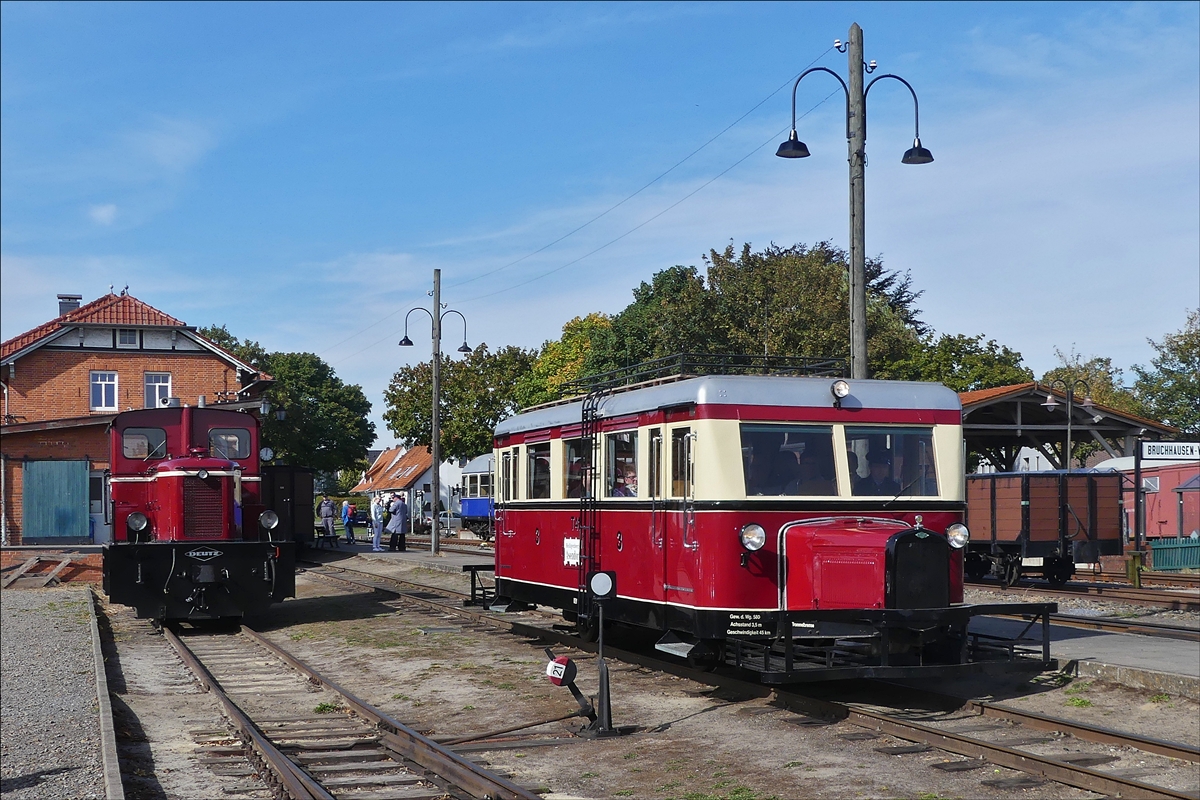 Triebwagen T42 C4vT, gebaut von der Dessauer Waggonfabrik AG in Dessau, BJ 1939, Baunr. 3214, wurde am 1. Mai 1997 nach Restaurierung beim DEV in Personenvekehr eingesetzt.