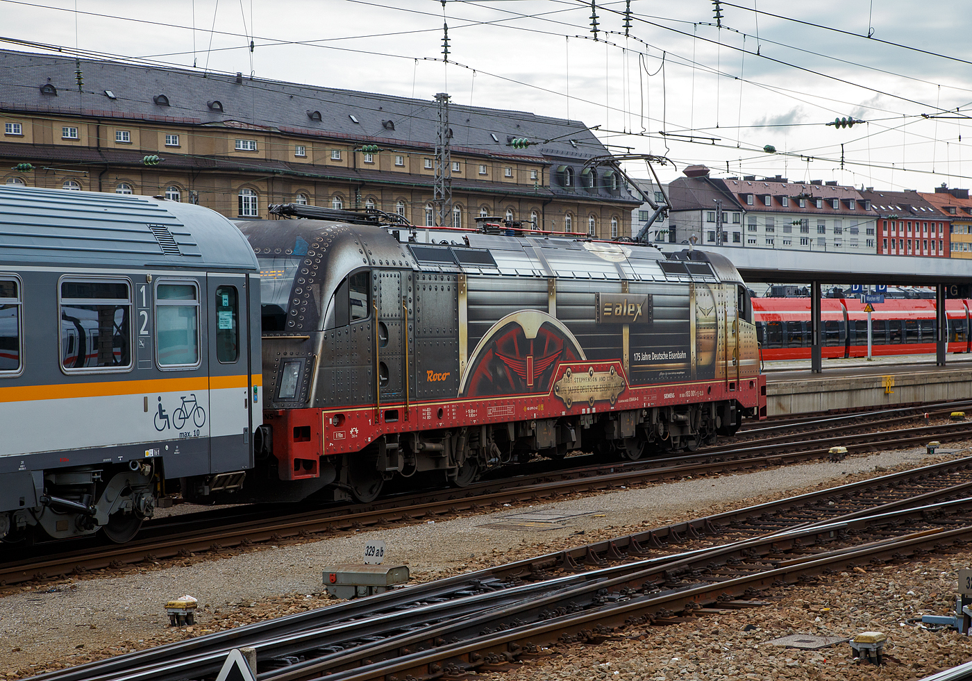 Während zwei DB 218 mit ihrem EC von Zürich nach München in Immenstadt durchfahren, hält auf Gleis 2 ein "Alex" auf seiner Fahrt von Lindau nach München.