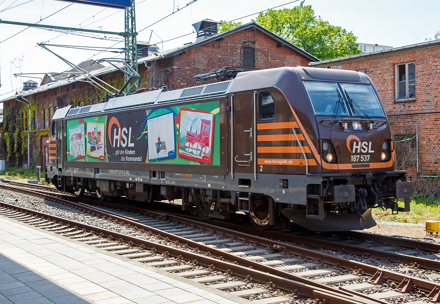 Die 187 537-6 (91 80 6187 537-6 D-HSL) der HSL Logistik GmbH (Hamburg) fährt am 16 Mai 2022 auf Tfzf (Triebfahrzeugfahrt) durch den Hauptbahnhof Schwerin.