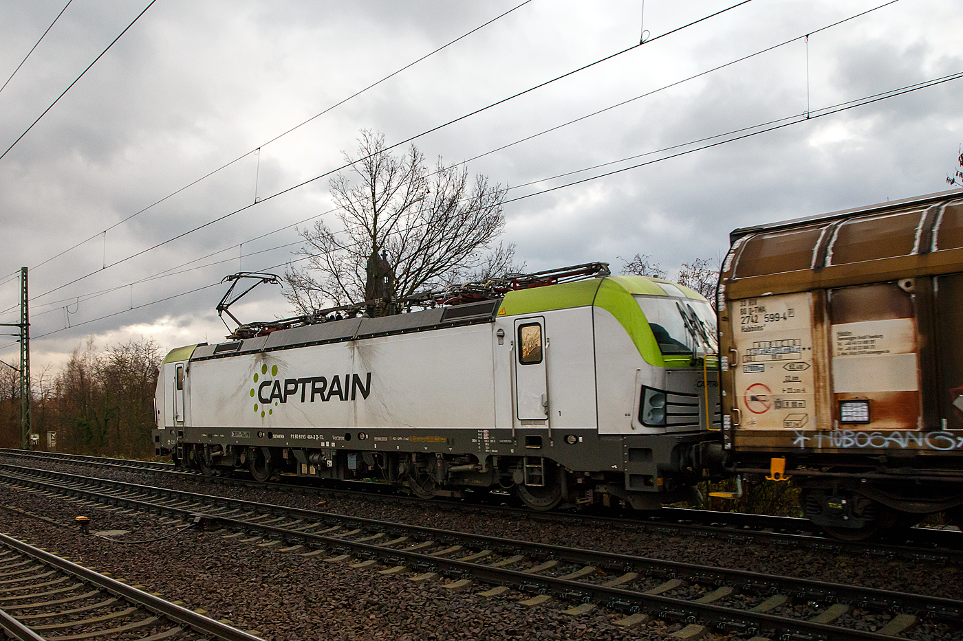 Die Siemens Vectron 193 781-2 (91 80 6193 781-2 D-ITL) der CAPTRAIN Deutschland GmbH / ITL Eisenbahngesellschaft mbH fährt am 08 Dezember 2022 mit einem Containerzug durch den Hauptbahnhof Dresden in Richtung Pirna.