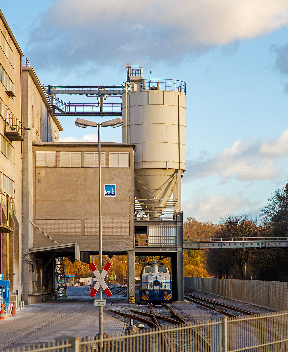 Die 55 PS-Diesel-Rangier-Lokomotive mit luftgekühltem Motor wurde 1959 von Deutz unter der Fabriknummer 57057 gebaut und an die Westdeutsche Kalk- & Portlandzementwerke, Werk Stolberg, geliefert, in den 1990er Jahren kam sie RWK (Rheinisch-Westfälische Kalkwerke AG), Werk Steeden, heute Schaefer Kalk GmbH & Co. KG.