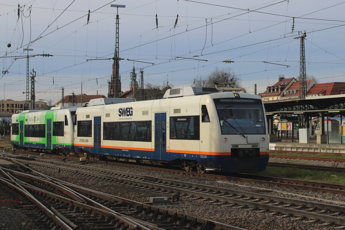 SWEG 520 steht am 15 Februar 2024 während eine Pause in Offenburg.