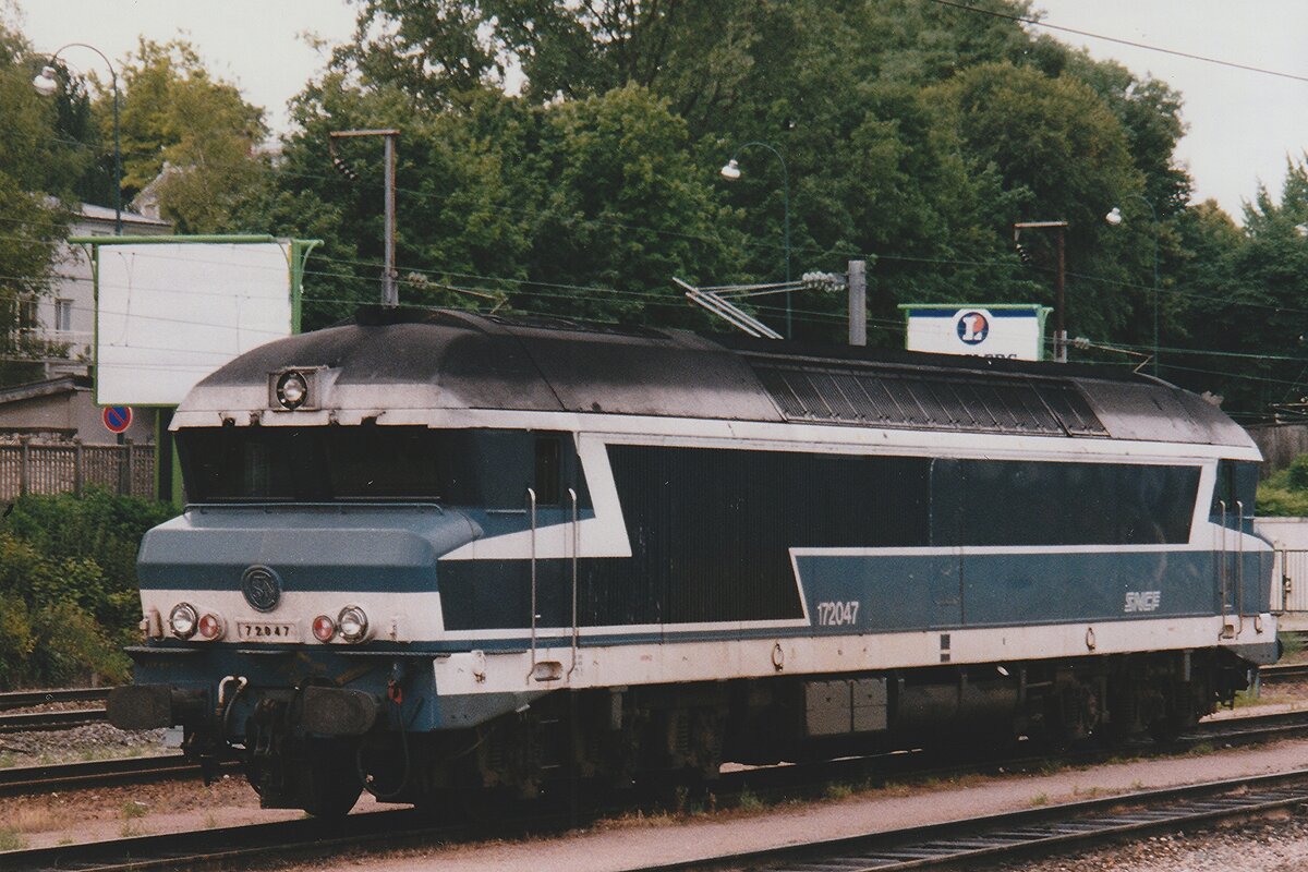 . Die SNCF Großdiesellok CC 72175 war am 19.06.2010 im Bahnhof von Mulhouse abgestellt. Sie trägt die tolle silber-blau-lila "en-voyage..."-Lackierung. (Jeanny)