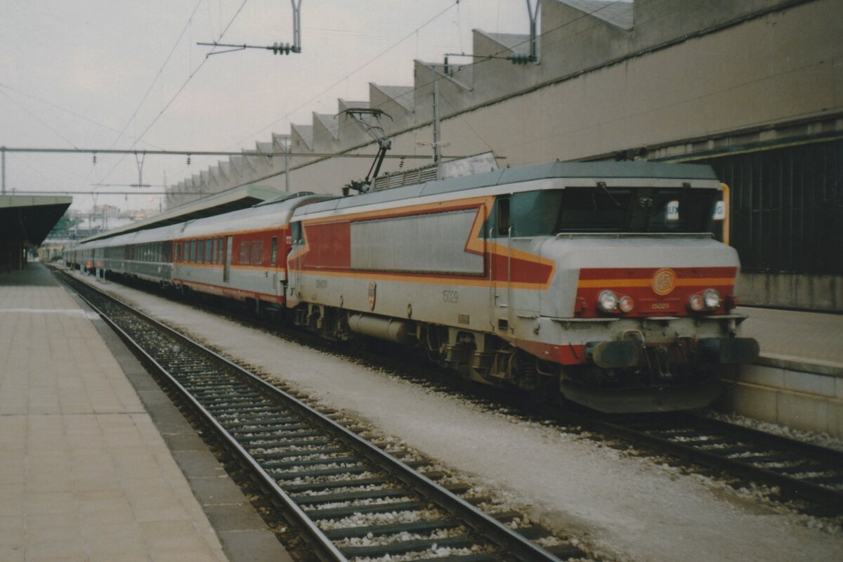 . Die "nez cassé" BB 15018 zieht am 29.10.2011 den buntgemischten IC (ex EC) 96 "Iris" Chur - Bruxelles Midi in den Bahnhof von Straßburg. (Jeanny)