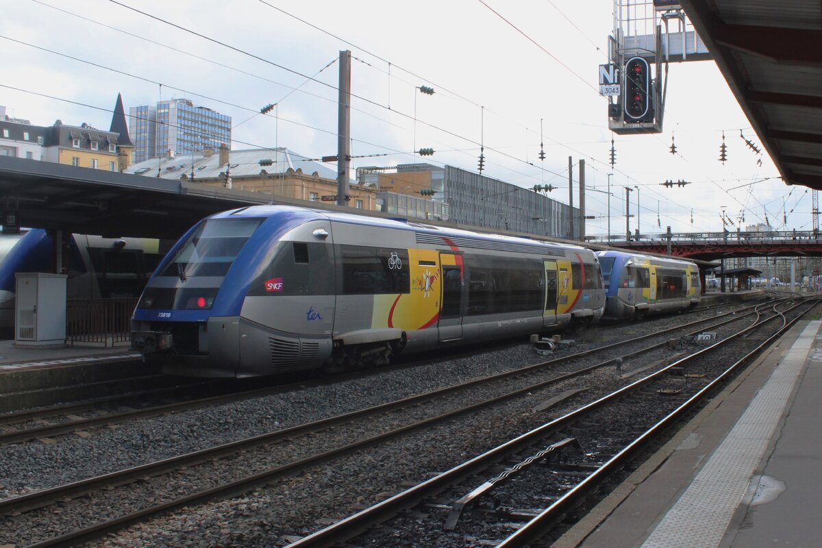 Triebzug 73619 mit 73665 verlassen am 22.09.2022 den Bahnhof von Chambéry–challes-les-eaux in Richtung Ambérieu.