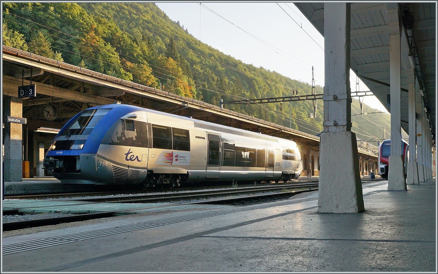 Es gibt es ja öfter das sich zwei Strecken in einem Kreuzungsbahnhof übereinander kreuzen, wie z.B. in Deutschland im Hauptbahnhof Osnabrück mit der Nordsüdachse „Hamburg – Ruhrgebiet“ und der Westostachse Amsterdam – Hannover – Berlin, oder auch im Hauptbahnhof Berlin, aber der Name ist und bleibt ja derselbe. In Berlin unterscheidet man ja einfach mit dem Zusatz „tief“, aber hier gibt man ihm mit „Belfort-Montbéliard TGV“ und „Meroux TGV“ gleich zwei Namen. Aber ich denke mit dem unteren Namen Belfort-Montbéliard TGV will man wohl verdeutlichen, dass man von hier schnell nach Belfort oder Montbéliard kommt. Auch wenn in Belfort direkt kein TGV hält, so ist Belfort sehr eng mit der Geschichte der TGV Züge verbunden, denn dort wurden die ersten TGV entwickelt und gebaut.