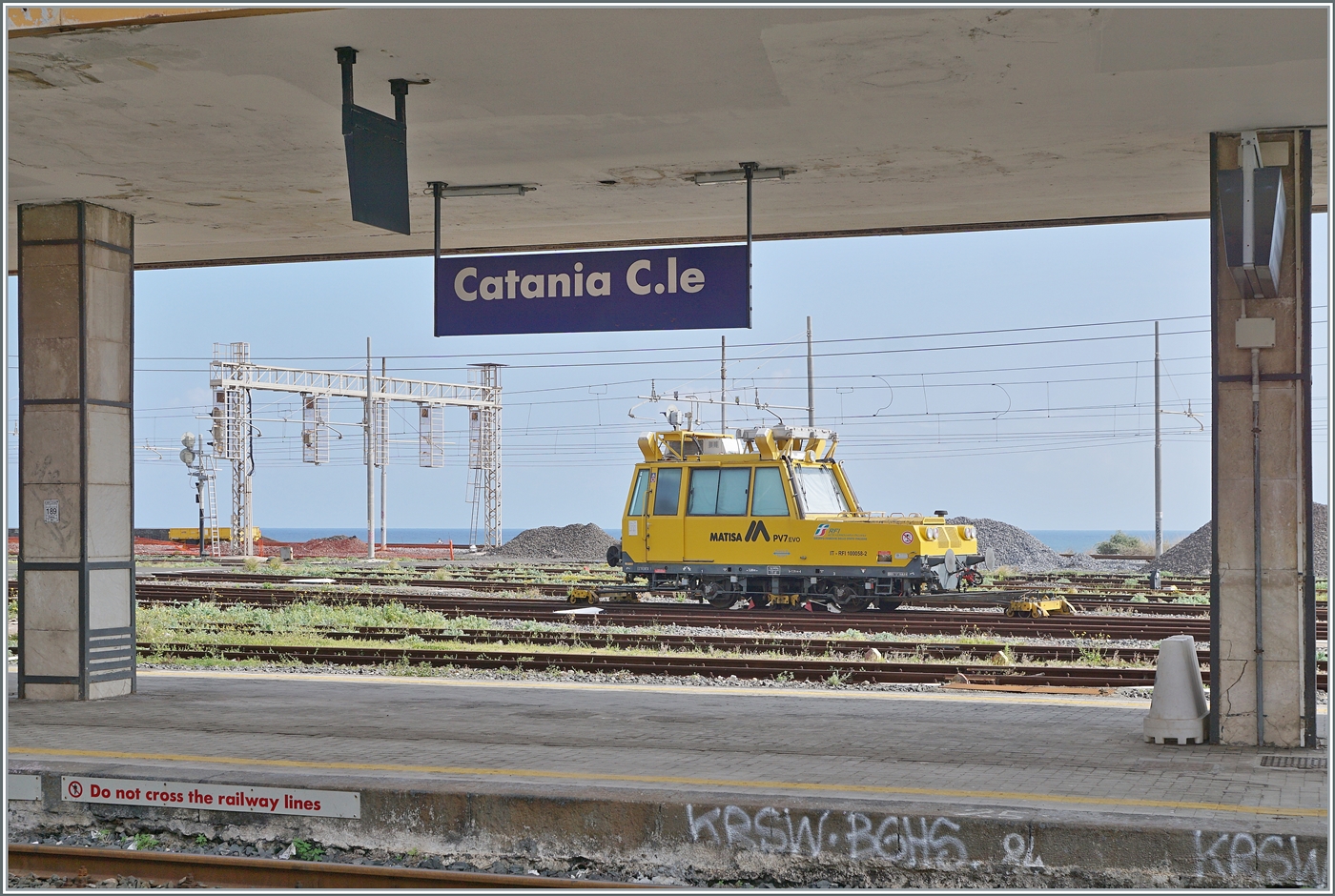 Der Wasserkran am Bahnsteig 2/3 vom Bahnhof Catania Centrale am 18.07.2022.