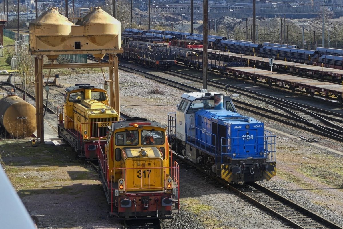 Ex-Arbed, heute CFL 308 rangiert am 1 Juni 2010 in Esch sur Alzette. der Escher Hochofen ging leider 2013 ausser Betrieb und Szenerie wie dieses ist in Esch sur Alzette nicht mehr möglich.