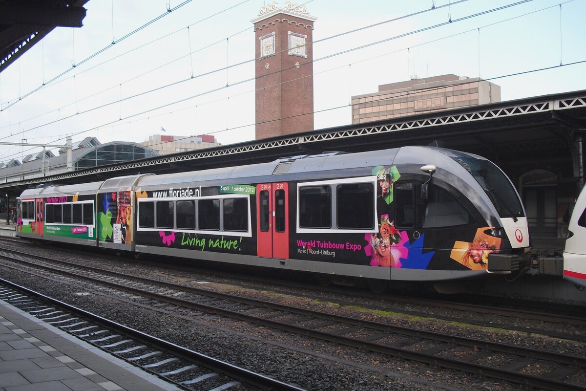 Veolia 202 steht mit Vollwerbung für "Floriade 2012" am 4 Augustus 2012 in Nijmegen. Jede zehn Jahre gab es diese Gartenschau in die Niederlände -bis 2022, wann die letzte Floriade in Aalsmeer eine Defizit von etwa 50 Millionen Euros aufwies, und damit die Floriadetradition beendete. Leon Schrijvers