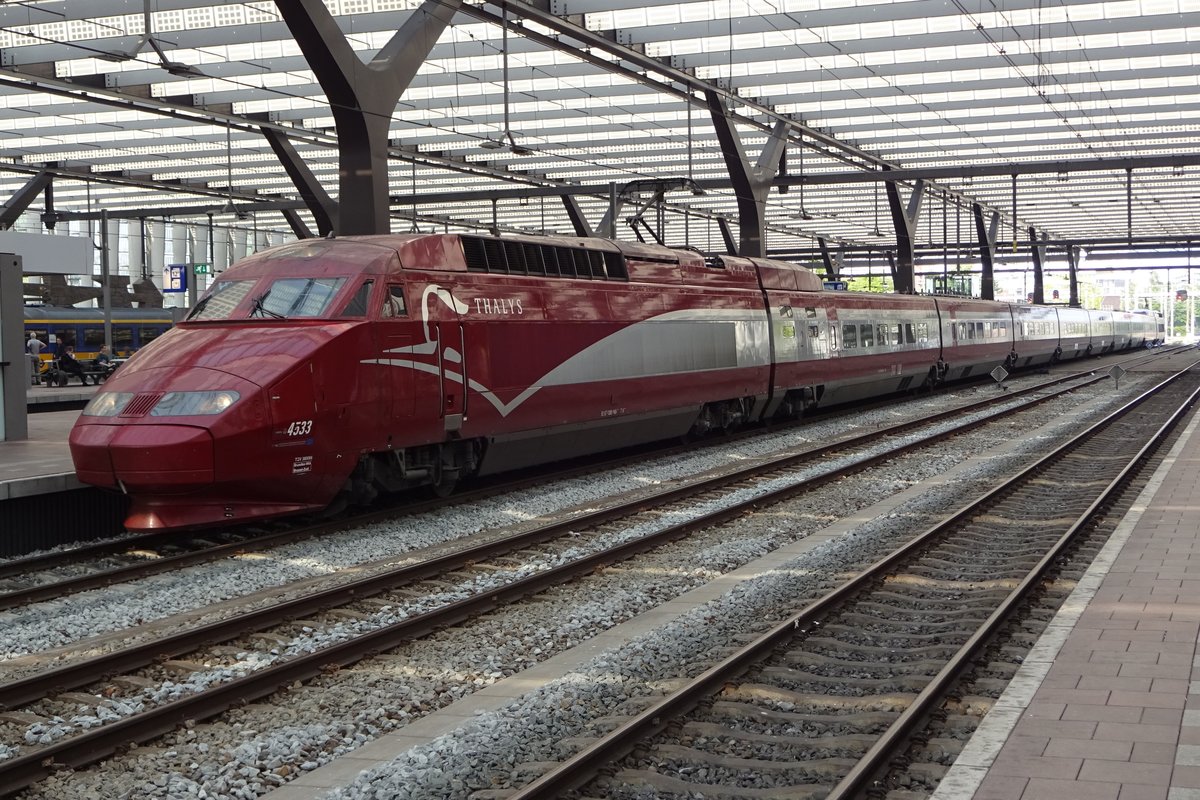 Am 18 Mai 2019 steht Thalys 4533 in Rotterdam Centraal abfahrtbereit für die Fahrt nach Paris.