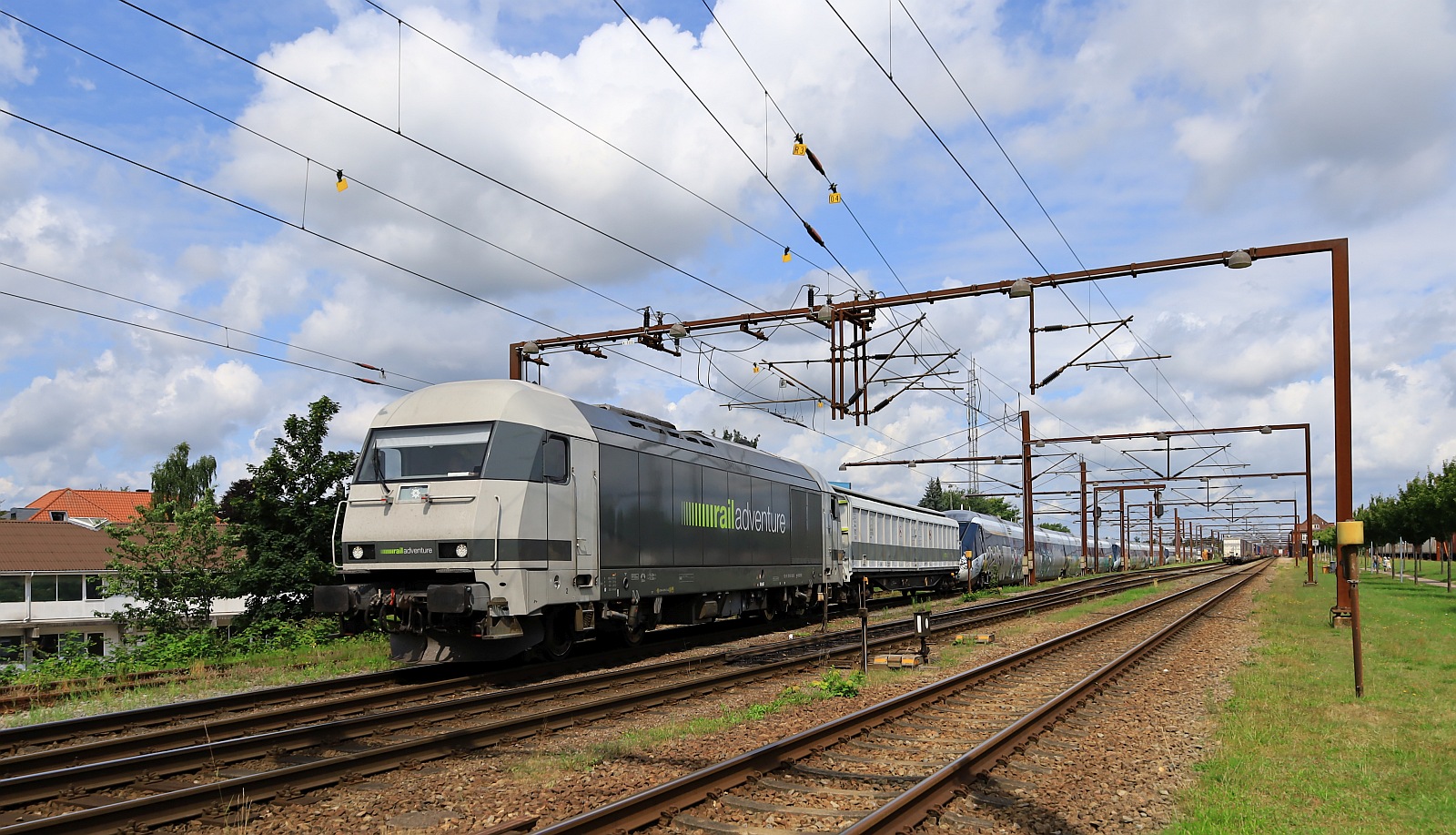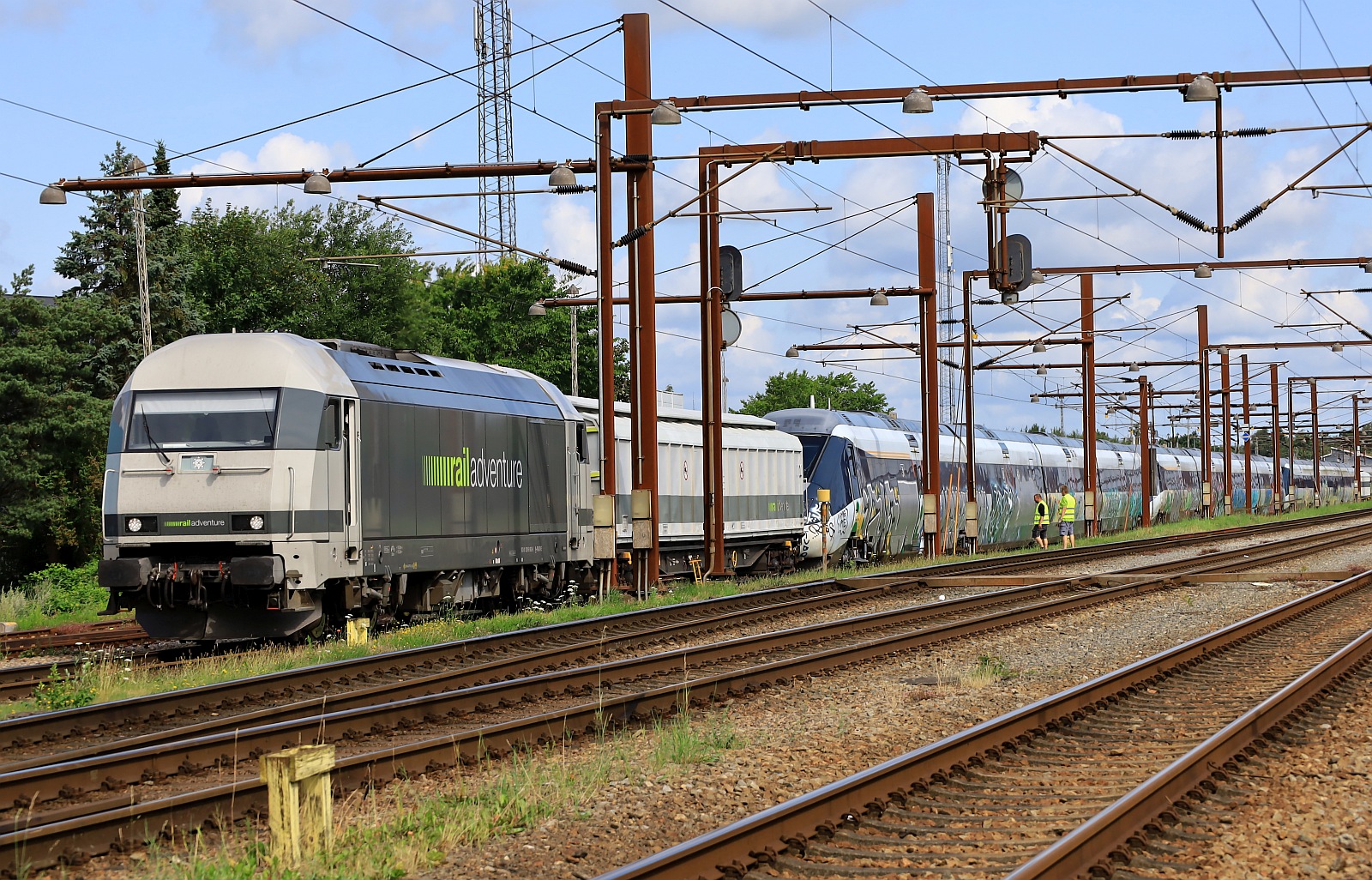 Während der Hectorrail-Güterzug auf Ausfahrt gen Süden wartete, kam unvorhergesehen die LTE 2016 903 aus Süden angefahren, um einen Swietelsy Bauzug nach Süden zu übernehmen, Pattburg 08.04.2025 Detlef Schikorr