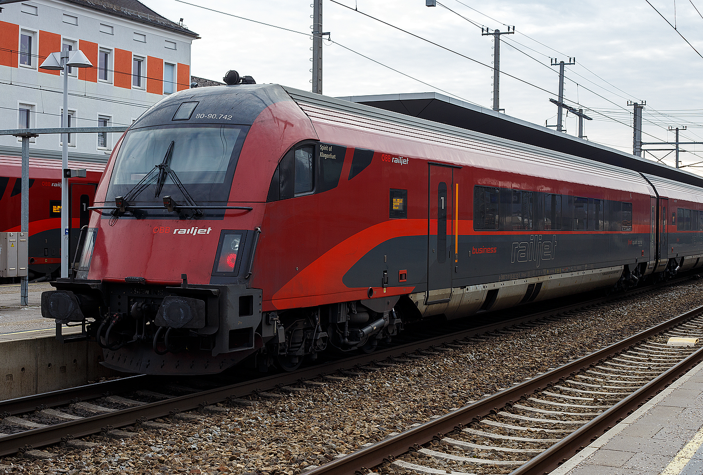 Der ÖBB REX 21 (REX 5873) von Salzburg Taxham Europark über Salzburg Hbf und Neumarkt am Wallersee nach Braunau am Inn, verlässt am 13 Januar 2025 den Hauptbahnhof Salzburg. Hier am Zugschluss der 2.Klasse ÖBB Inlandsreisezug-Steuerwagen (CityShuttle-Wagen) A-ÖBB 50 81 80-73 035-2 der Gattung Bmpz-s.