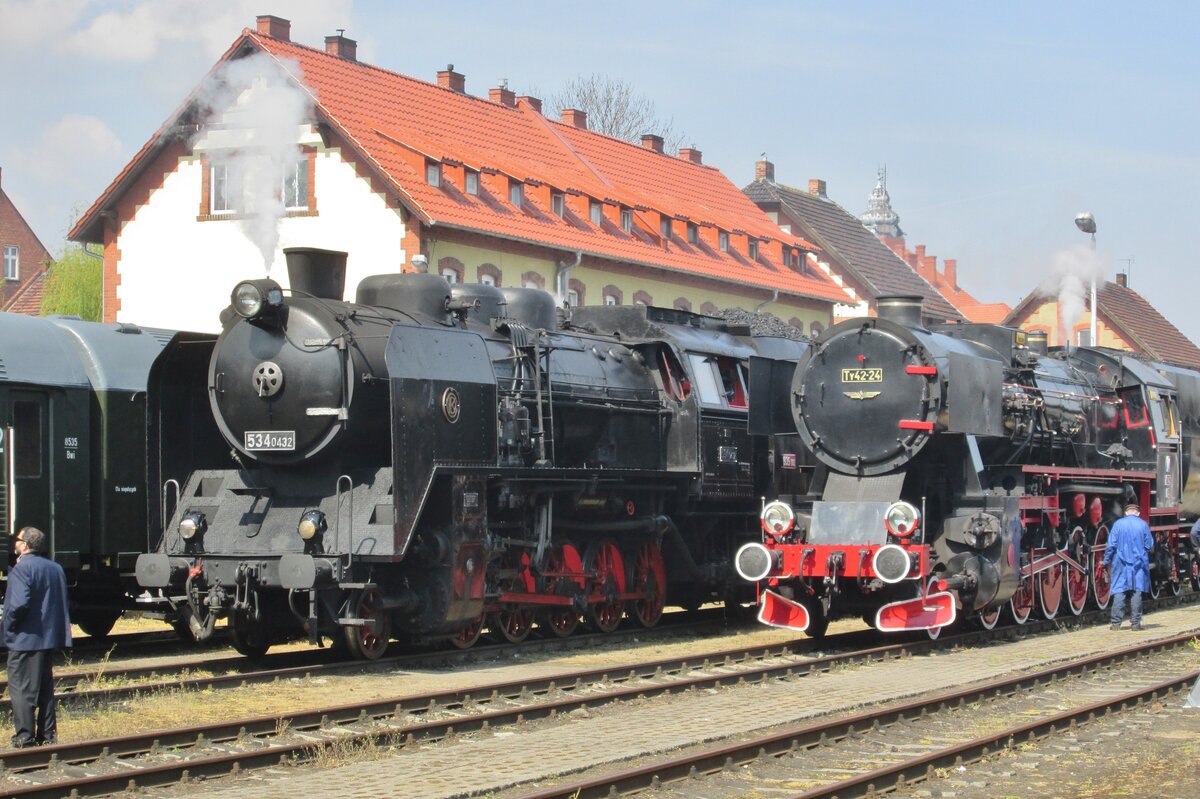 Hochbetrieb in Wolsztyn am 30 April 2016: bevor den Dampflokparade wurden die Tschechischer 534 0432 und die Polnische Tyu42-24 vorbereitet.