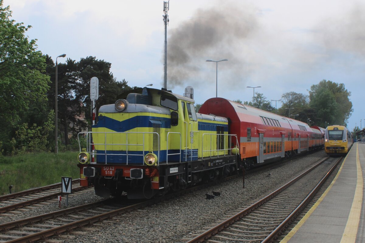 Trüb war der 5.Mai 2024 wann SU42-518 samt Regionalzug aus Hel ausführ nach Gdynia.