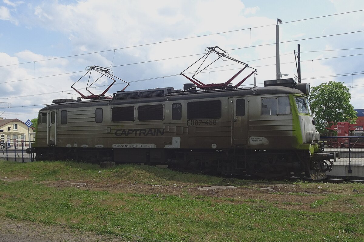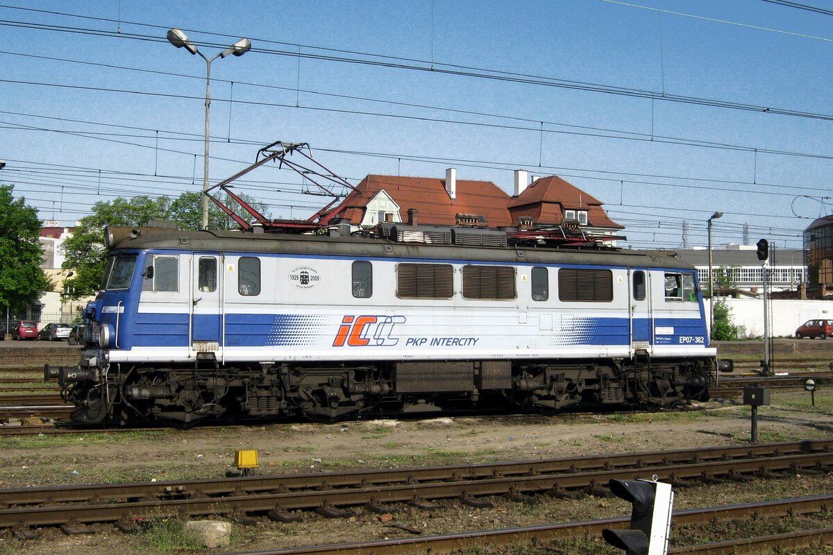 TLK mit EP07-335 steht am 3 Mai 2016 in Katowice. Wegen ein Missverstandnis verzögerte die Abfahrt dieser TLK um 45 Minuten.