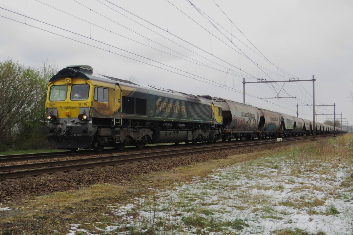 Am 4 Jänner 2022 durchfahrt Freightliner PL 513-02 samt Getreidezug nach Oss Wijchen.