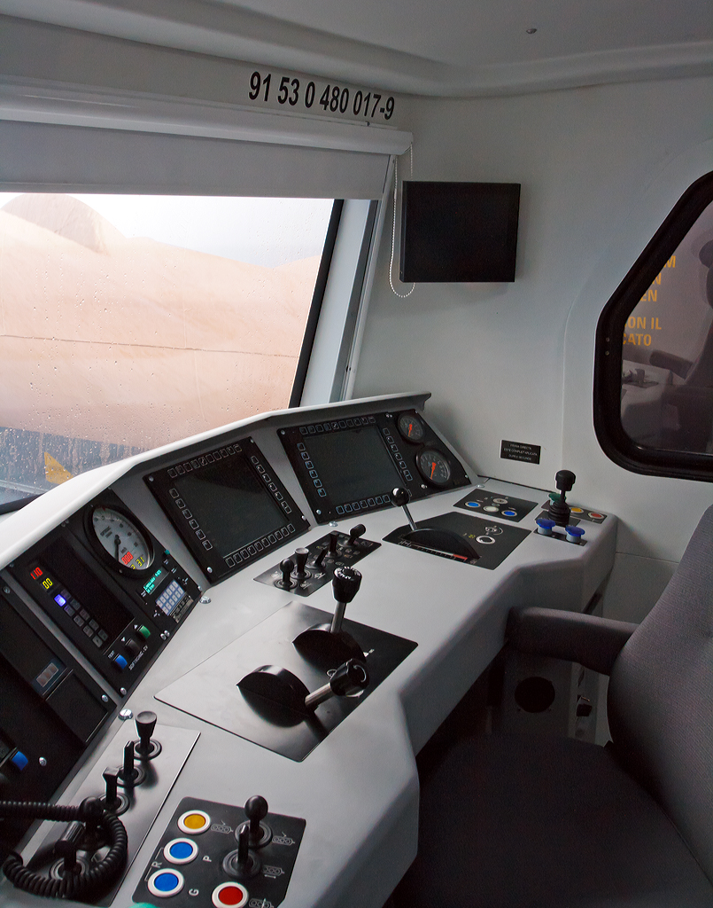 Ein der zwei Führerstände der Softronic Zweisystem Elektrolokomotive Transmontana (91 53 0480 017-9) der DB Schenker Rail Romania S.R.L., ausgestellt auf der InnoTrans 2014 in Berlin (hier am 26.09.2014). Armin Schwarz