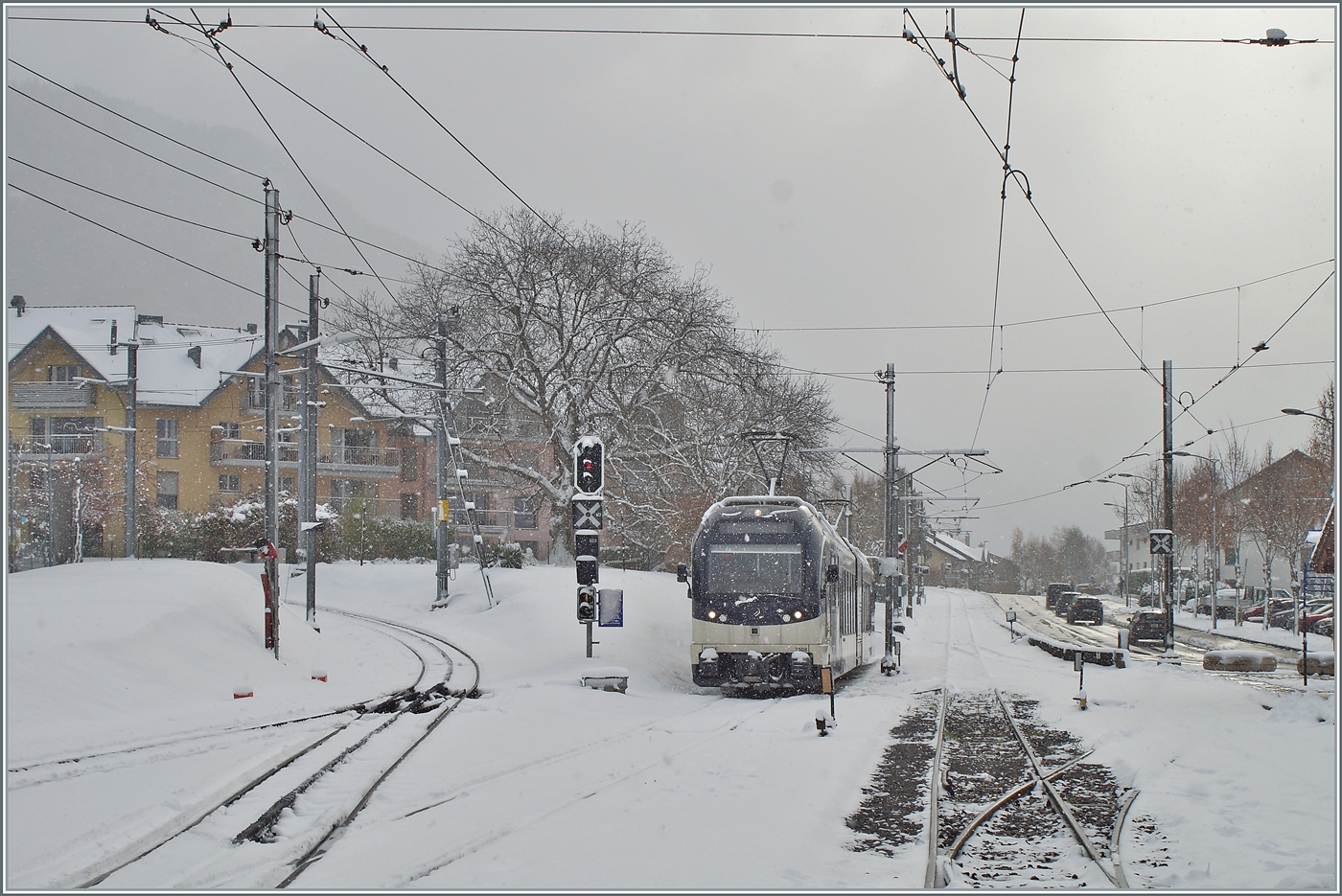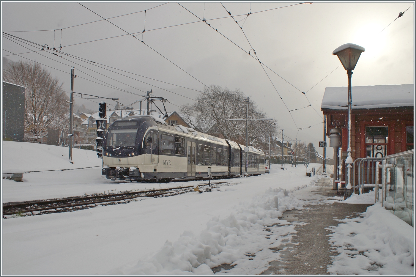 Der Bahnhof Blonay bei Night (18.05.2018).