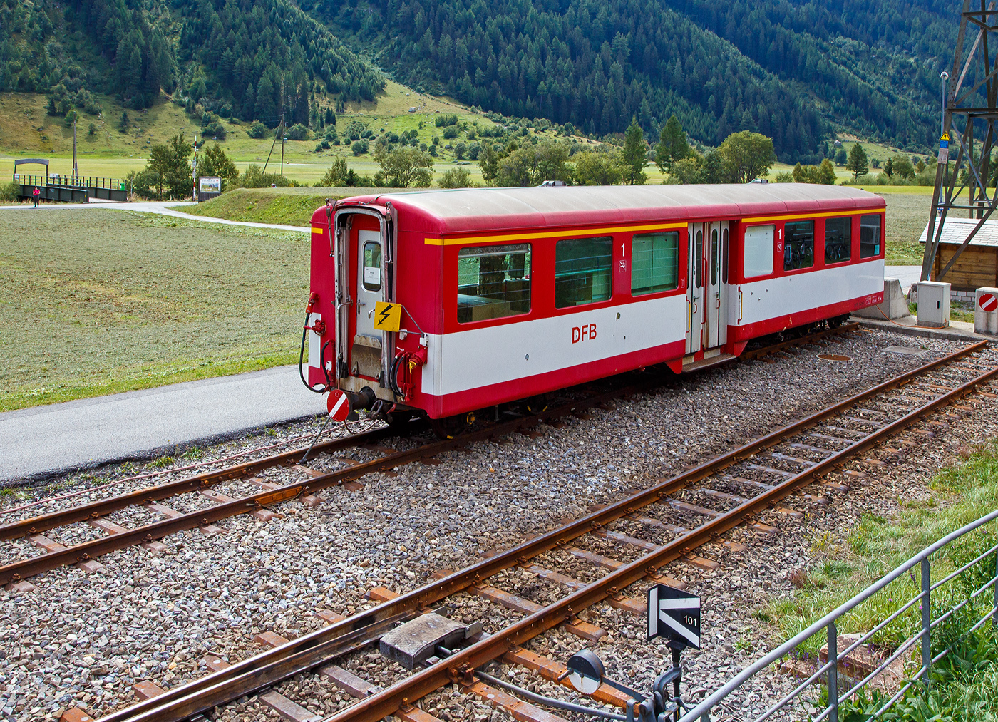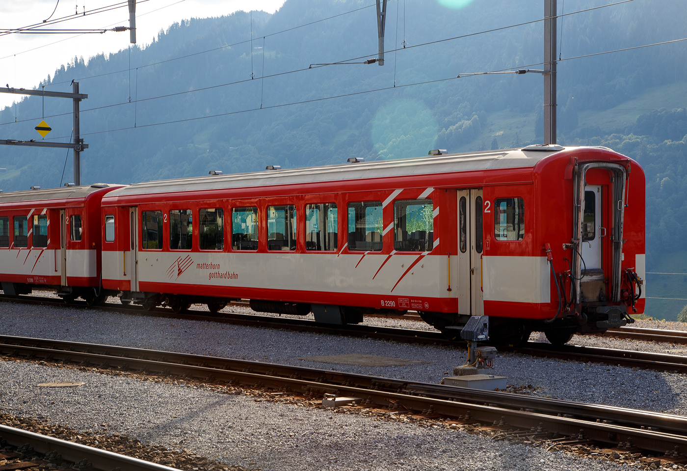 Der MGB 1./2. Klasse Steuerwagen ABt 4157 am 01.08.2019 im Bahnhof Göschenen im Zugverband.