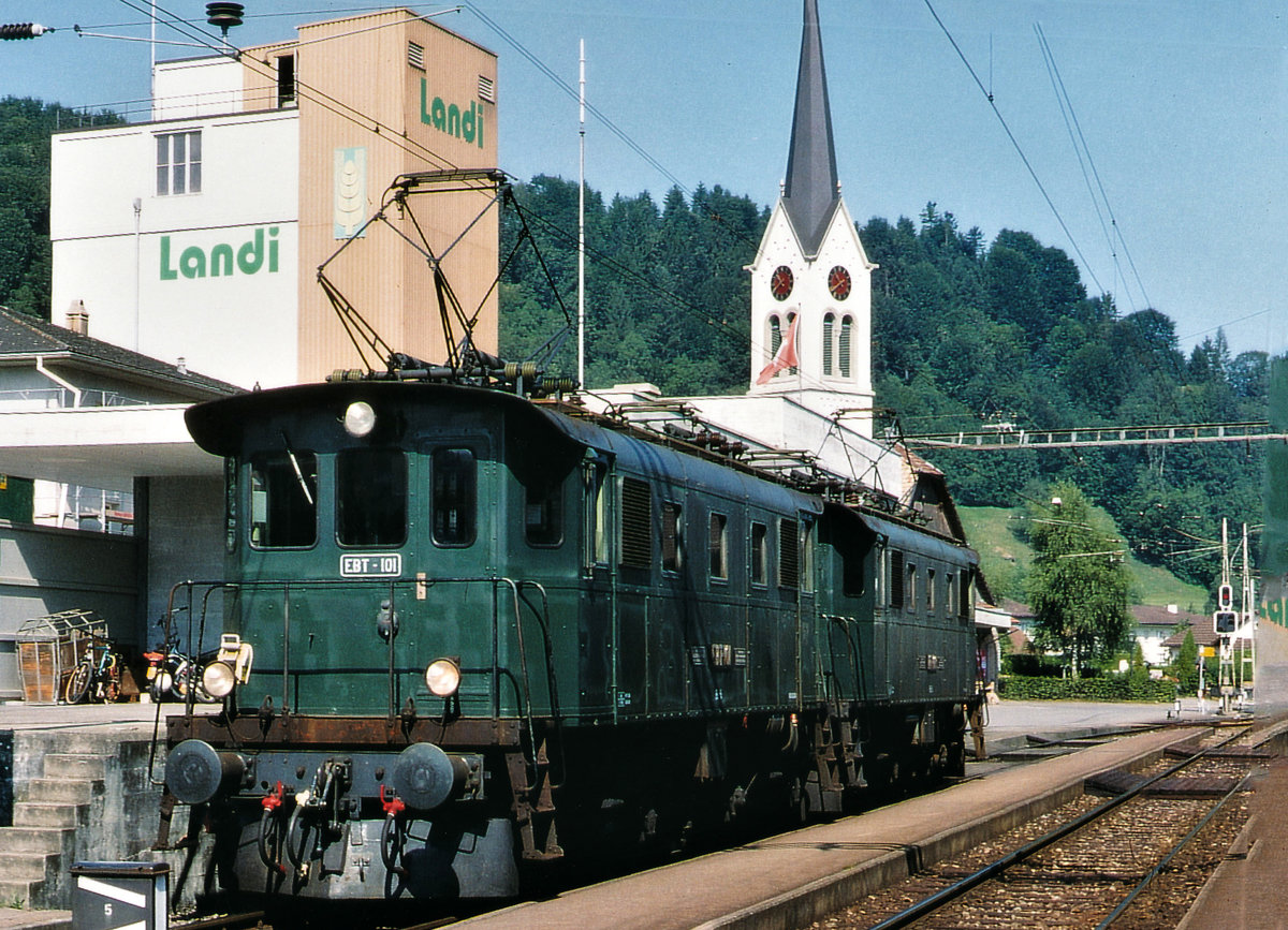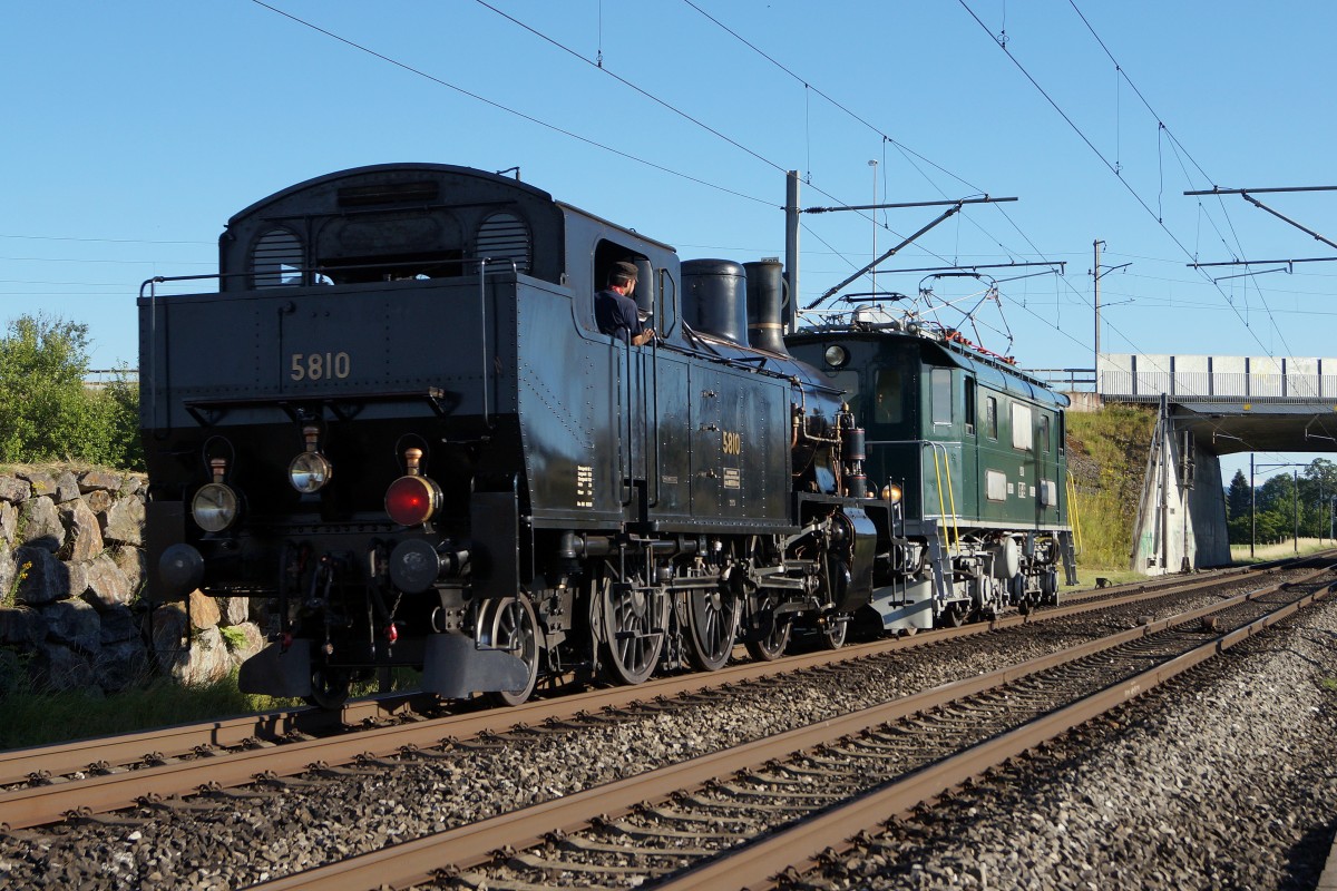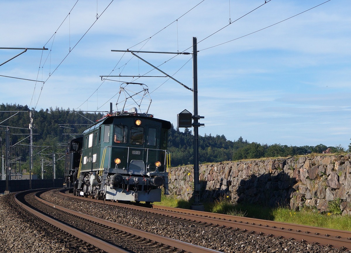 100 Jahre BLS: Te 2/3 31 der BLS und Be 4/4 102 der EBT am ersten verregneten Ausstellungstag (29.06.2013)
