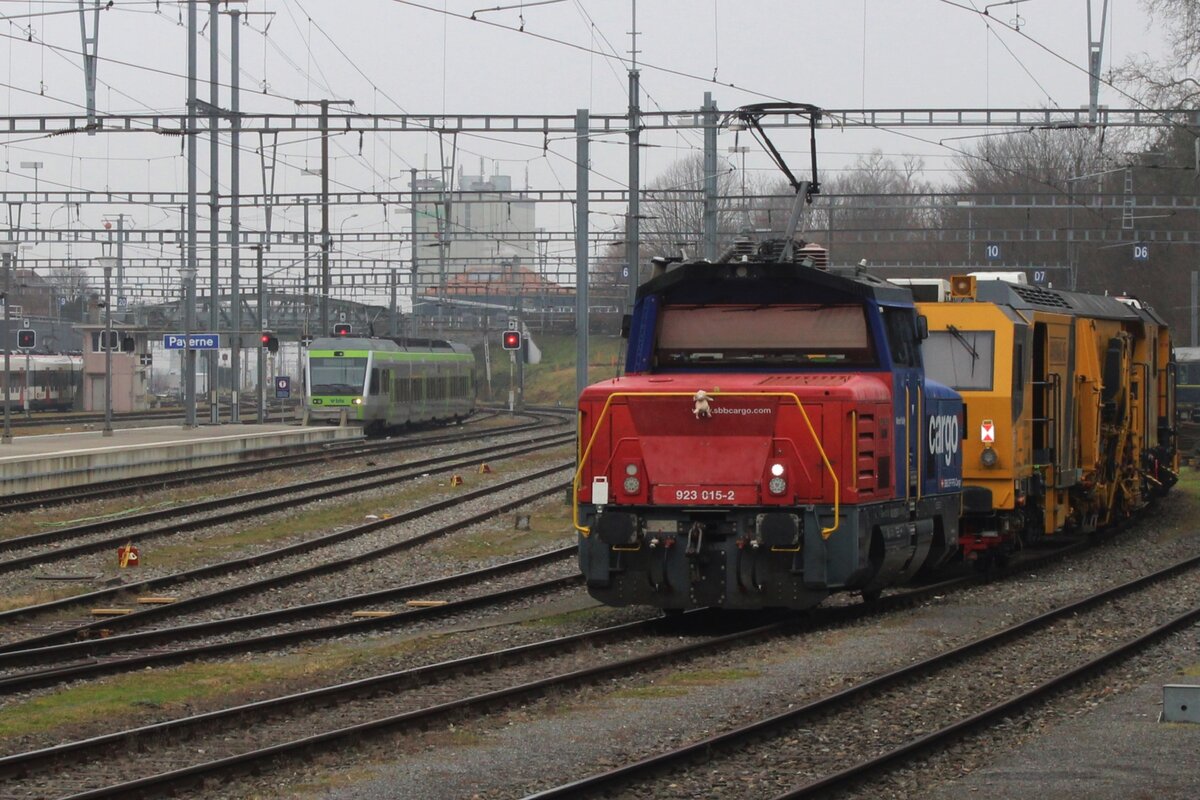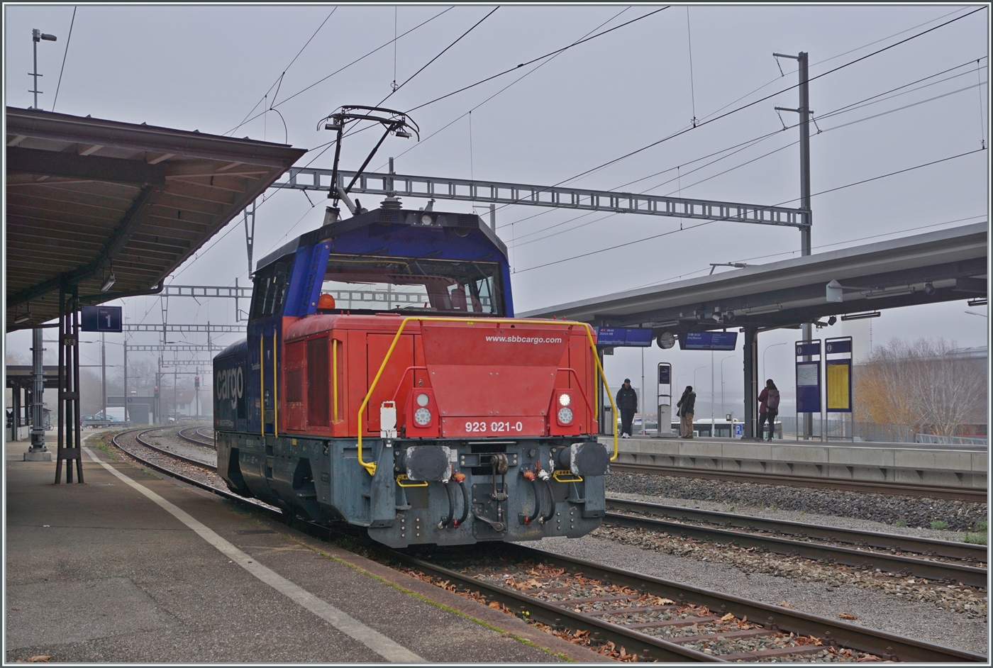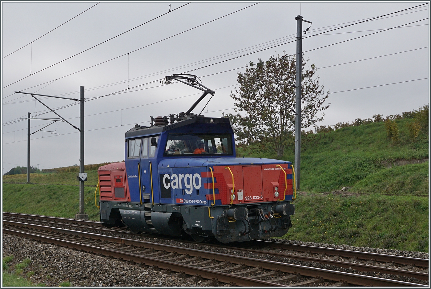 Die SBB Cargo Eem 923 025-1 "Schlossberg" (Eem 97 85 1 923 025-1 CH-SBBC) am 28.05.2023 beim Bahnhof St-Maurice (aus dem Zug heraus aufgenommen).