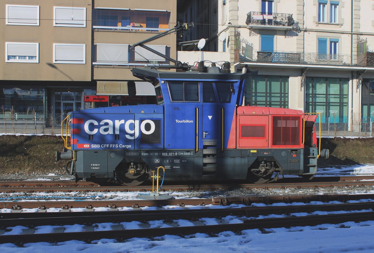 Die SBB Cargo Eem 923 021-0 wartet in Oensingen auf einen nächsten Einsatz.