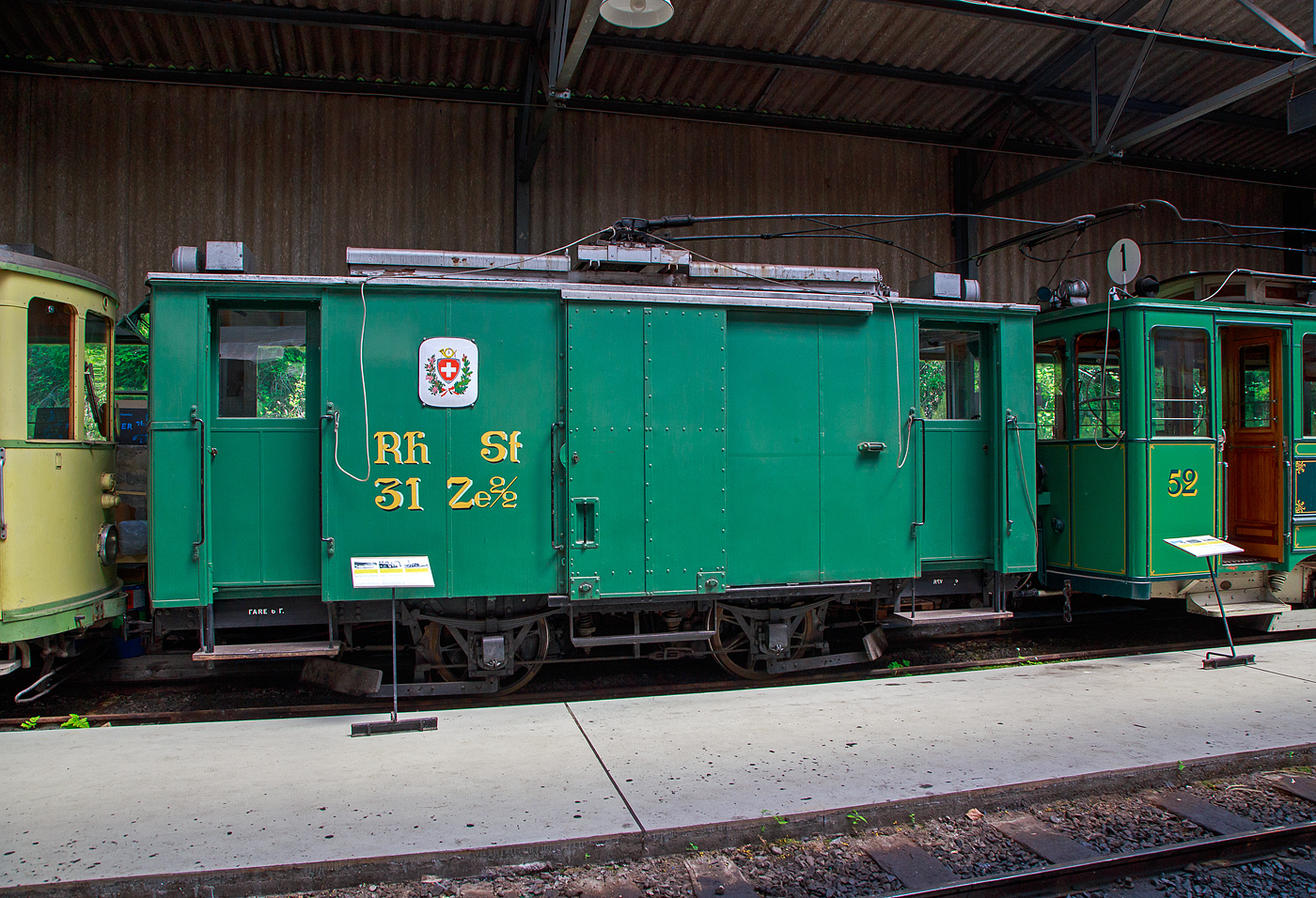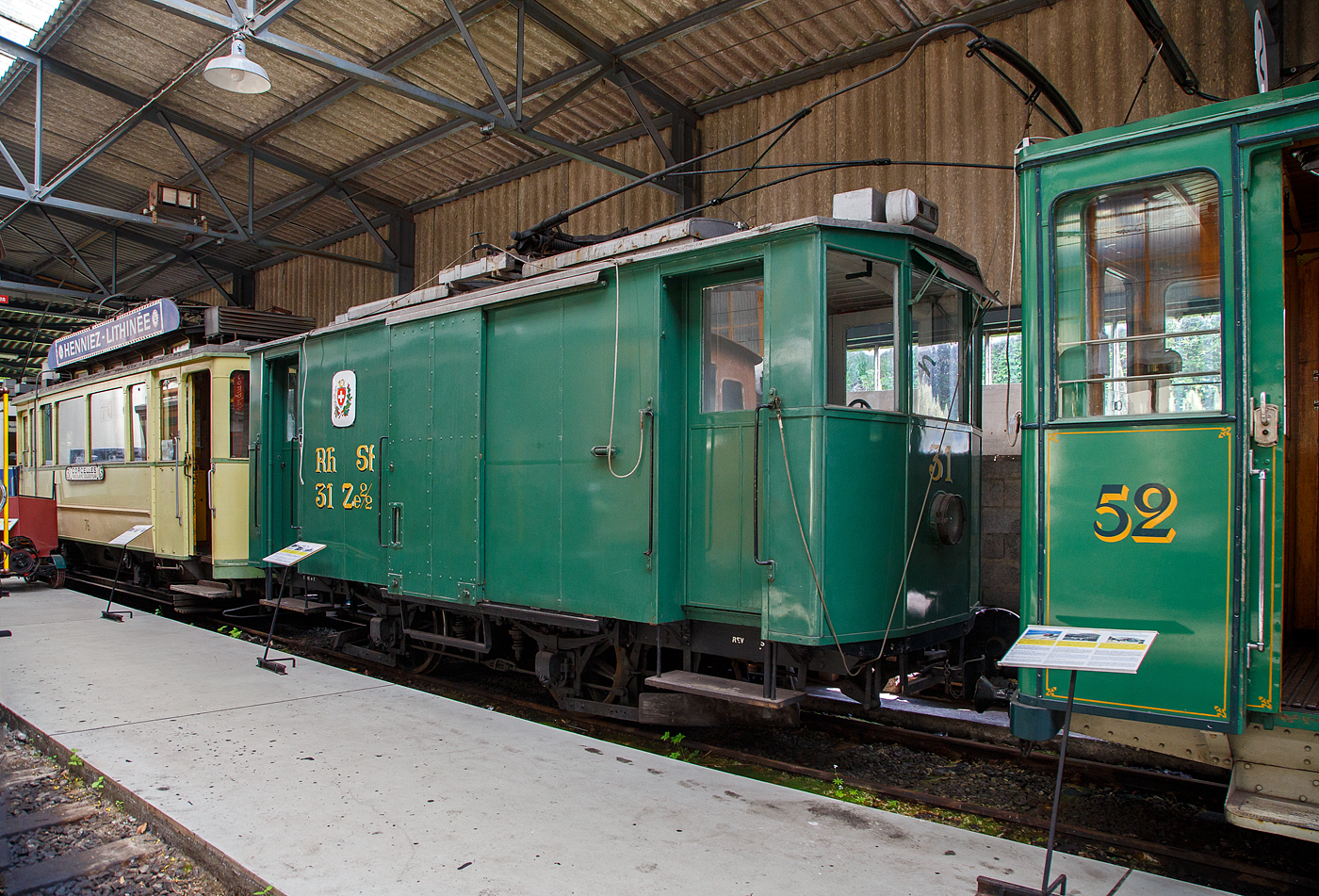 Der Triebwagen Ce 2/3 ex 28 der TL (Transports publics de la région lausannoise (deutsch Öffentliche Transporte der Region Lausanne)), ex Genève Veyrier 23, BVB 18, rangiert am 27.05.2012 im Museums-Areal der Museumsbahn Blonay–Chamby in Chaulin.