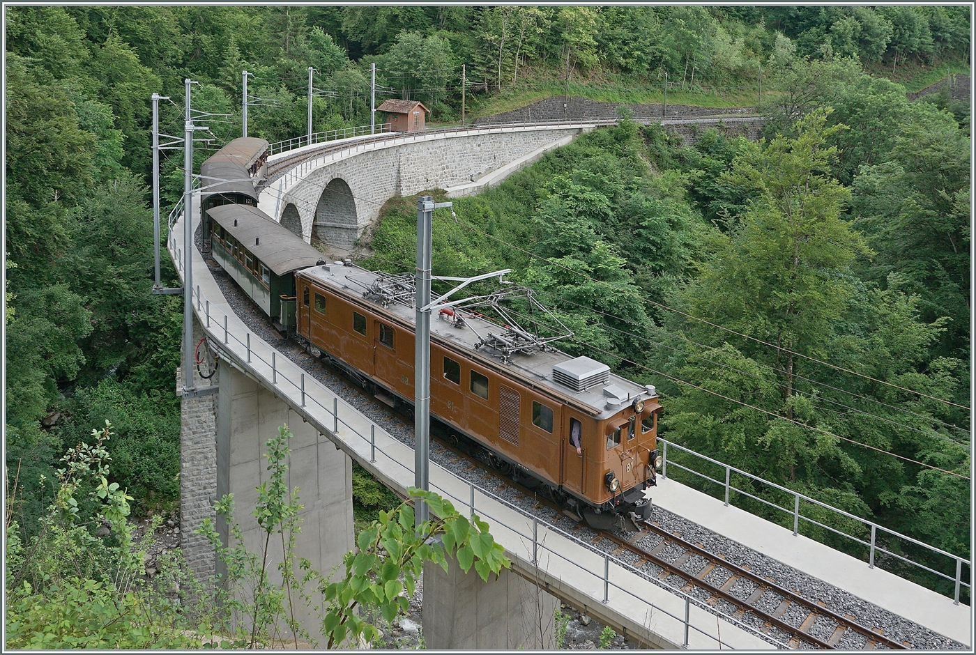 La DER de la Saison 2023 - Die Bernina Bahn RhB Ge 4/4 81 der Blonay-Chamby Bahn erreicht mit ihrem  Bernina-Express  Chaulin.