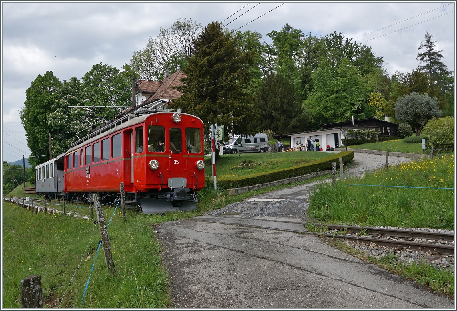 Das Timing hat nicht ganz geklappt: der CEV MVR ABeh 2/6 7503 "Blonay-Chamby" verlässt Chamby etwas zu früh oder die BFD HG 3/4 N° 3 der Blonay Chamby Bahn erreicht Chamby etwas zu spät...