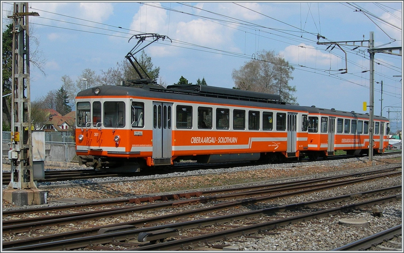 Das Bild zeigt den in Oensingen ausfahrenden ASM Be 4/8 113  MARS  nach Langenthal.