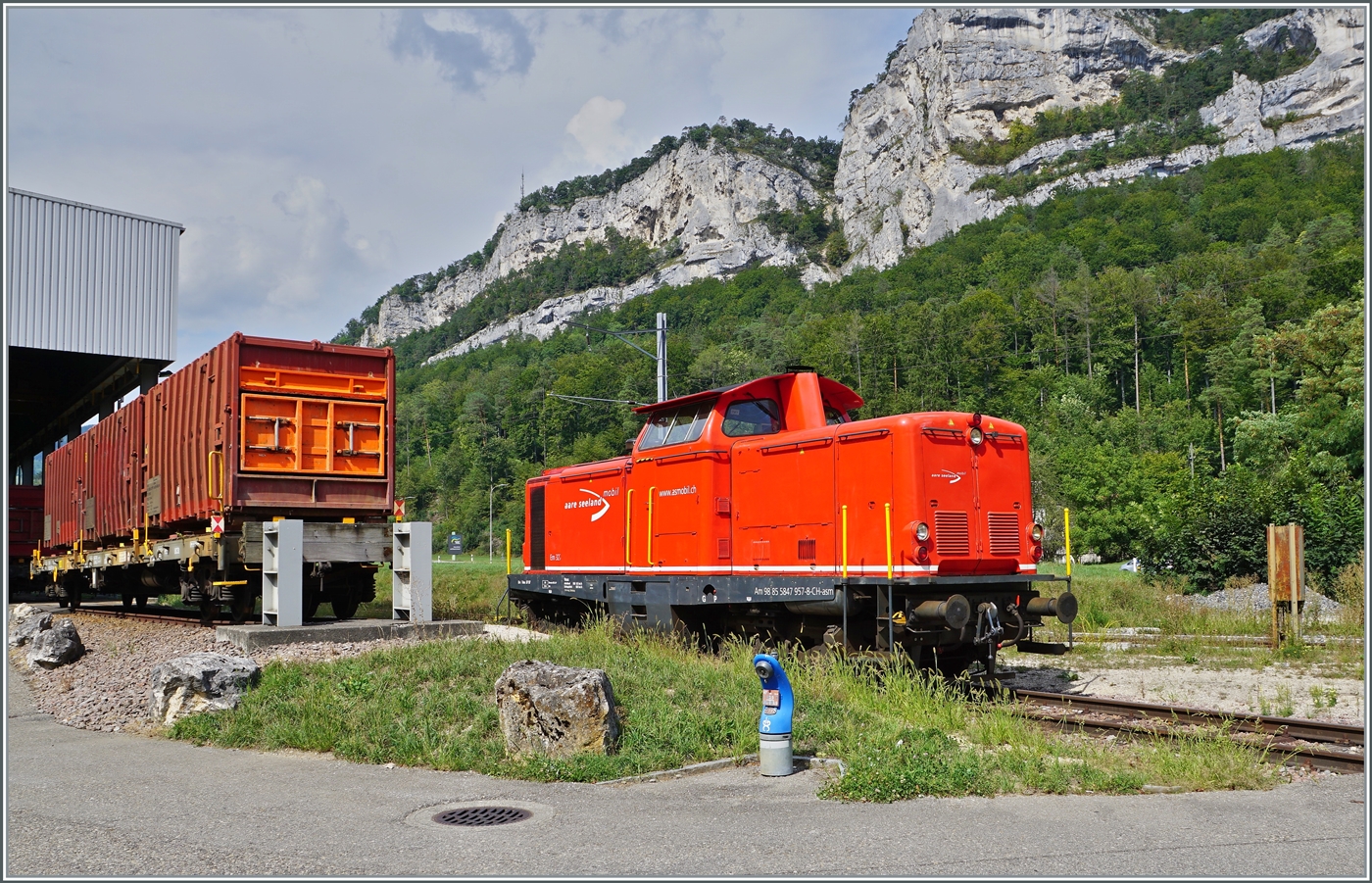 Überraschenderweise kam ich nach den Bildern der Diesellok 211 041-9 (92 80 1211 041-9 D-NeSA) kurz darauf erneut in den Genuss eine  V100  zu fotografieren, die Am 847 957-8 der asm in Industriegebiet bei der Klus der OeBB. Die Lok hat die UIC Nummer Am 98 85 5847 957-8 CH-asm. Der Standort ist frei zugänglich, doch der etwas verdeckt unter Teil der Lok ließ ich nicht vermeiden. 30. August 2022