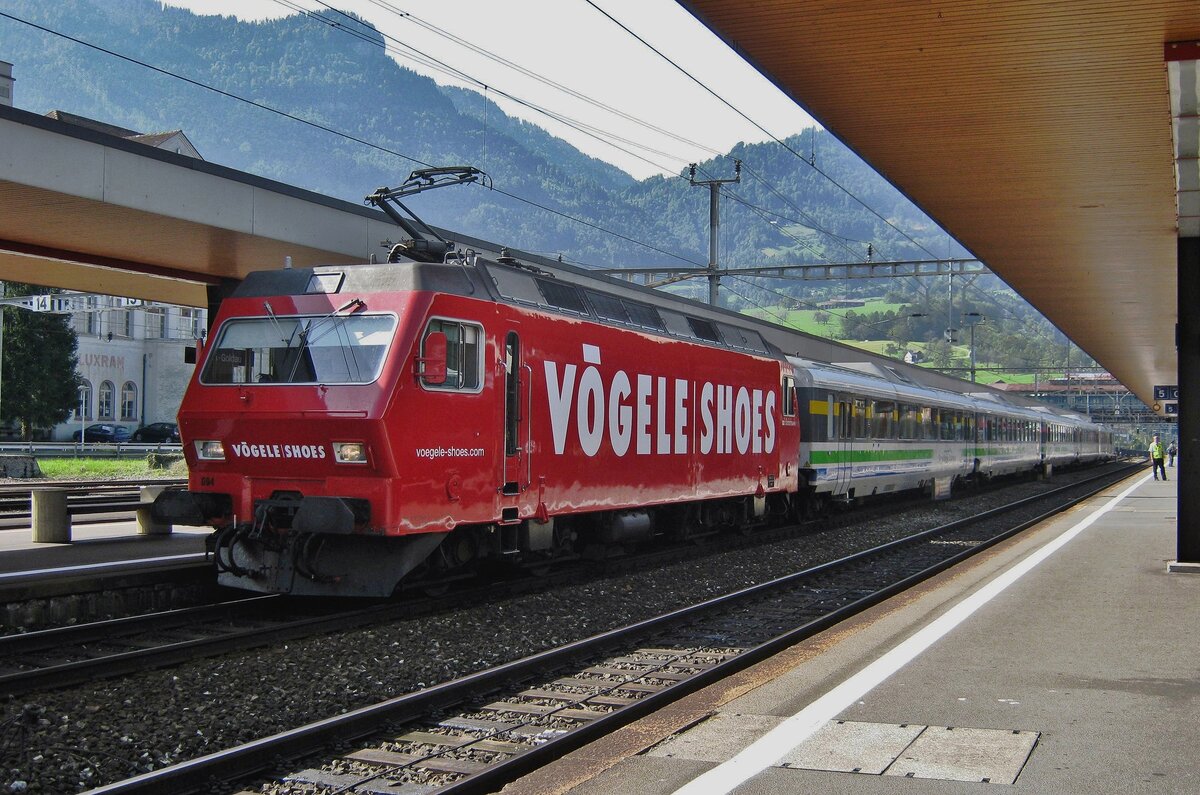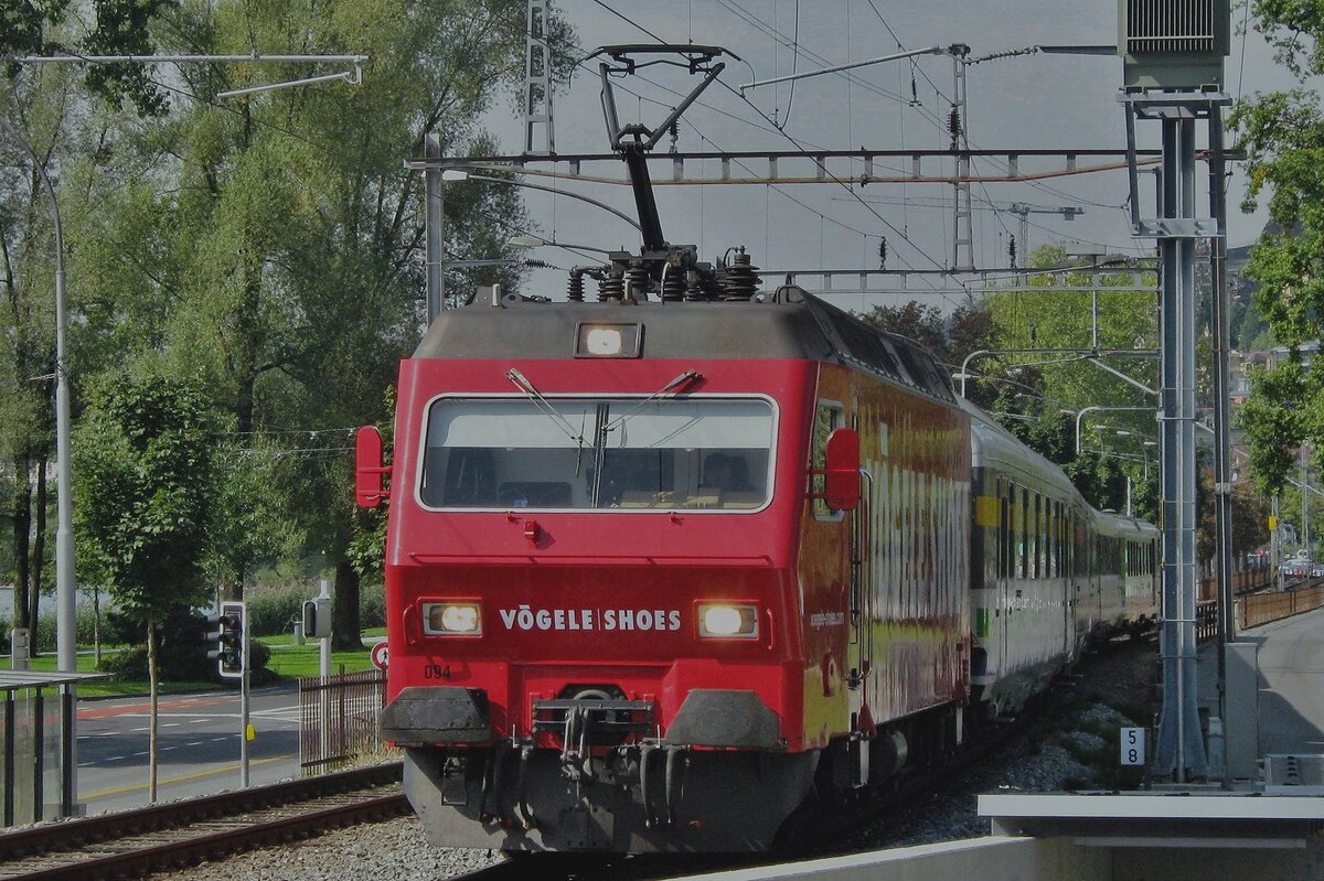 Die SOB (Südostbahn) Re 456 094-2 (91 85 4456 094-2 CH- SOB) "Herisau" im Vögele Shoes Design ist am 29.09.2012 (3:30 Uhr) mit dem Voralpen Express in Luzern abgestellt.
