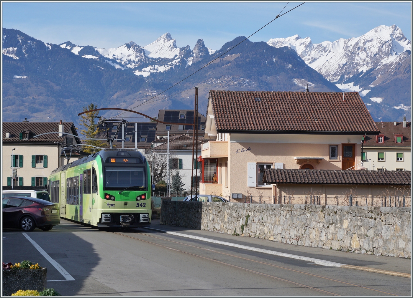 Der Zugang zum TPC Dépôt En Châlet wird leider durch die SBB Strecke Brig - Lausanne begrenzt, trotzdem kann man das eine oder andere sehen, hier z.b. den TPC A-L BDeh 4/4 302 mit Bt in seiner "alten" A-L Lackierung.