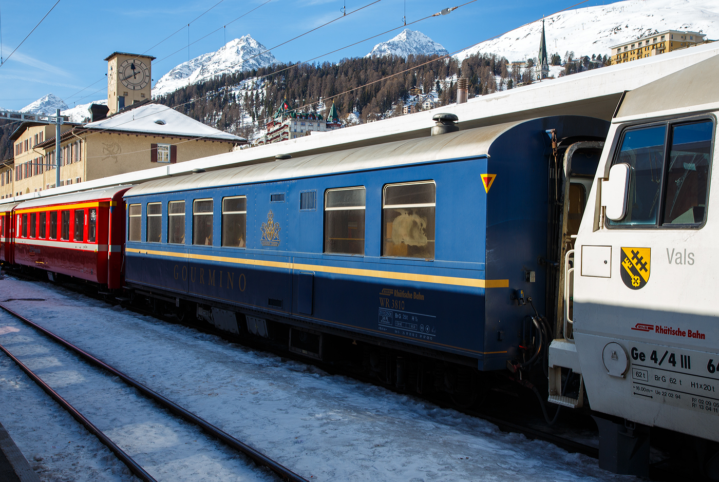 Winterlich geschmückt ist im Empfangsgebäude vom RhB Bahnhof St. Moritz, hier am 20 Februar 2017.