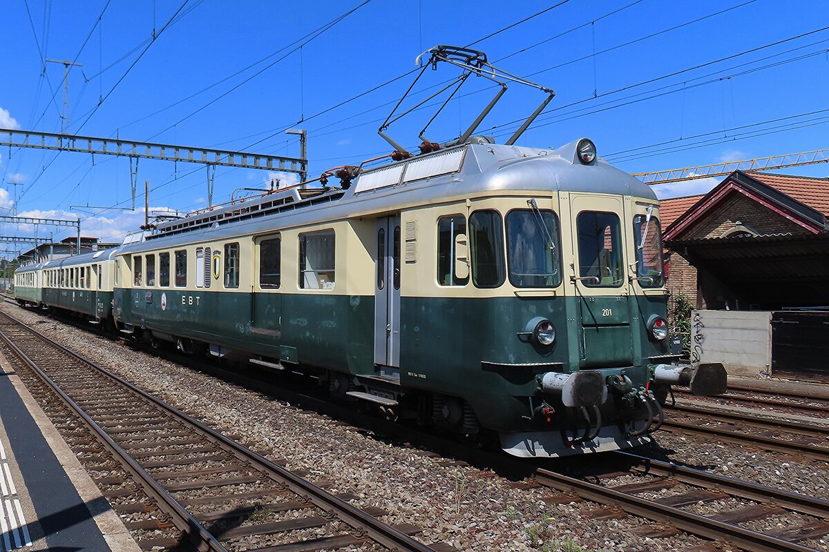 Büren an der Aare vor gut vierzig Jahren. Ein BDe 4/4 erreicht mit seinem zeittypischen Nebenbahn-Zug auf der Fahrt von Herzogenbuchsee nach Lyss den Bahnhof Büren an der Aare.