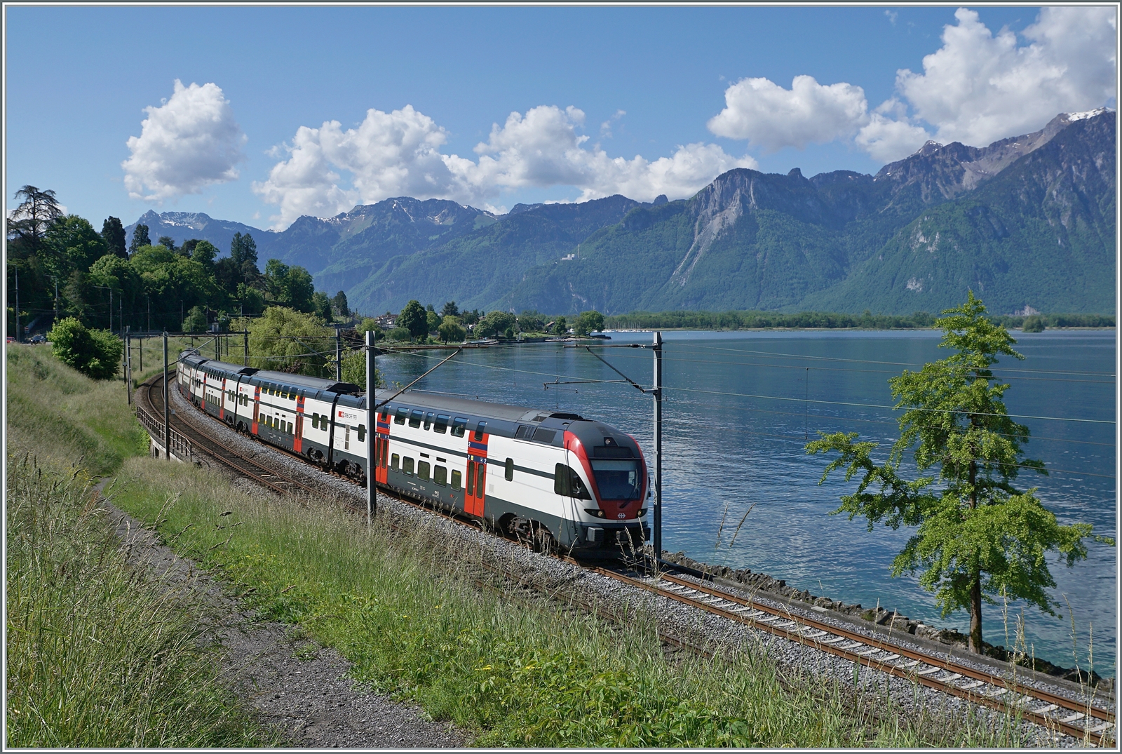Ein SBB RABe 511 ist als RE 33 kurz nach Villeneuve auf dem Weg nach Annemasse. 14. Mai 2025
