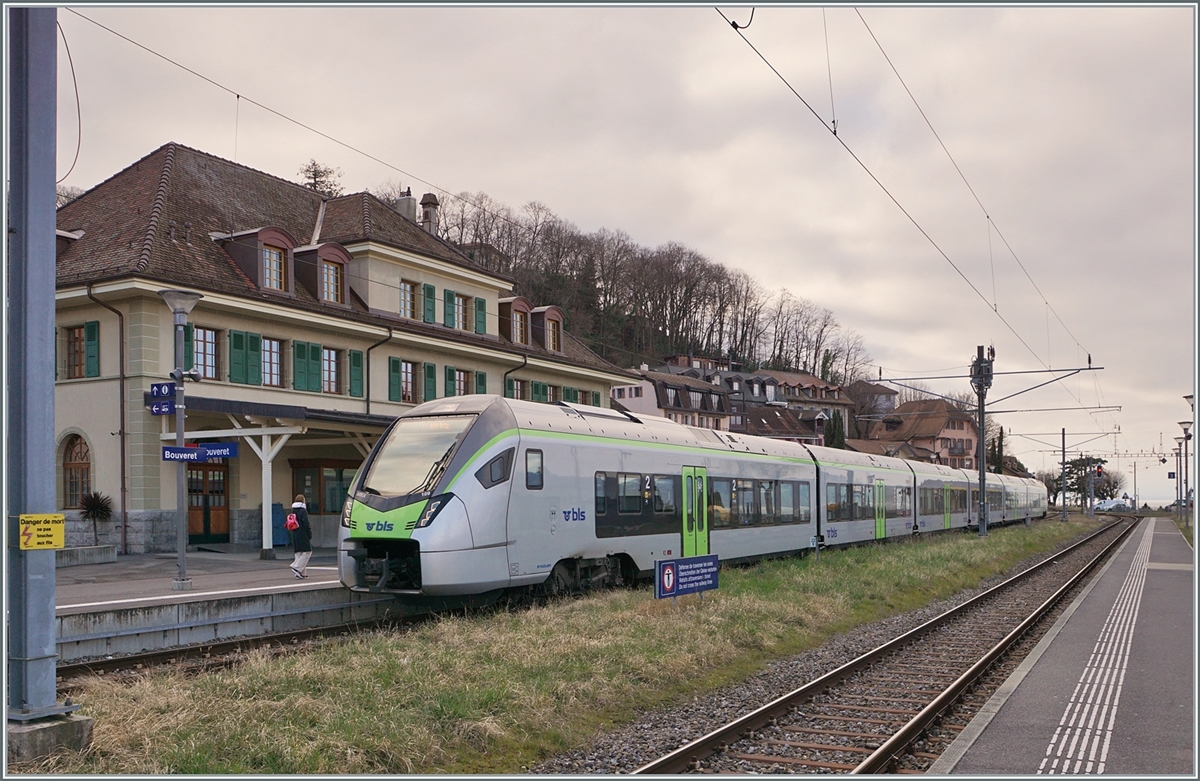 Der BLS RABe 528 109 ist als R 91 6125 von St-Gingolph nach Brig in Bouveret eingetroffen und wartet auf den Gegenzug. 4. März 2024