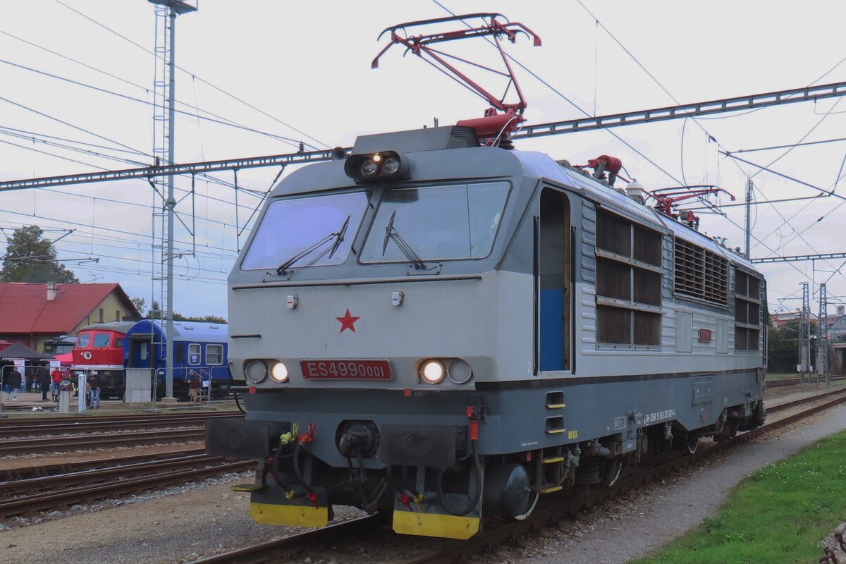 Am 27 September 2025 steht ZSSK ES499-0001/350 001 in Benesov u Prahy. Die Schuhe rechts im Bild gehören zum Fotograf, der am diesen Moment keine Lust hatte, auf zu stehen...
