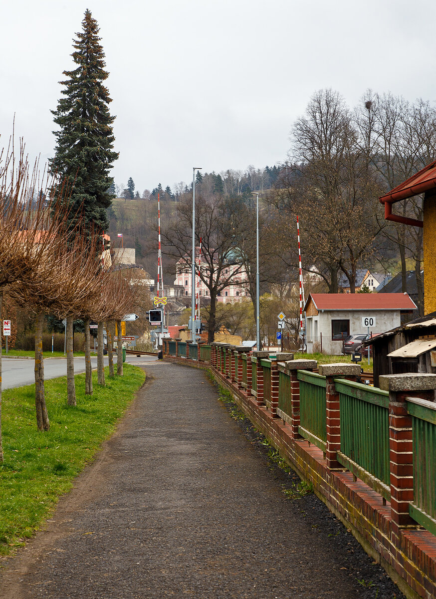 Der schöne Bahnhof Bečov nad Teplou (Petschau) der Bahnstrecke Mariánské Lázně–Karlovy Vary (Marienbad–Karlsbad) – SŽDC 149 und Anfangs- bzw. Endpunkt der Bahnstrecken Blatno u Jesenice – Bečov nad Teplou (SŽDC 161), sowie Bečov nad Teplou - Krásný Jez–Nové Sedlo u Lokte (SŽDC 144). Hier am 20.04.2023.