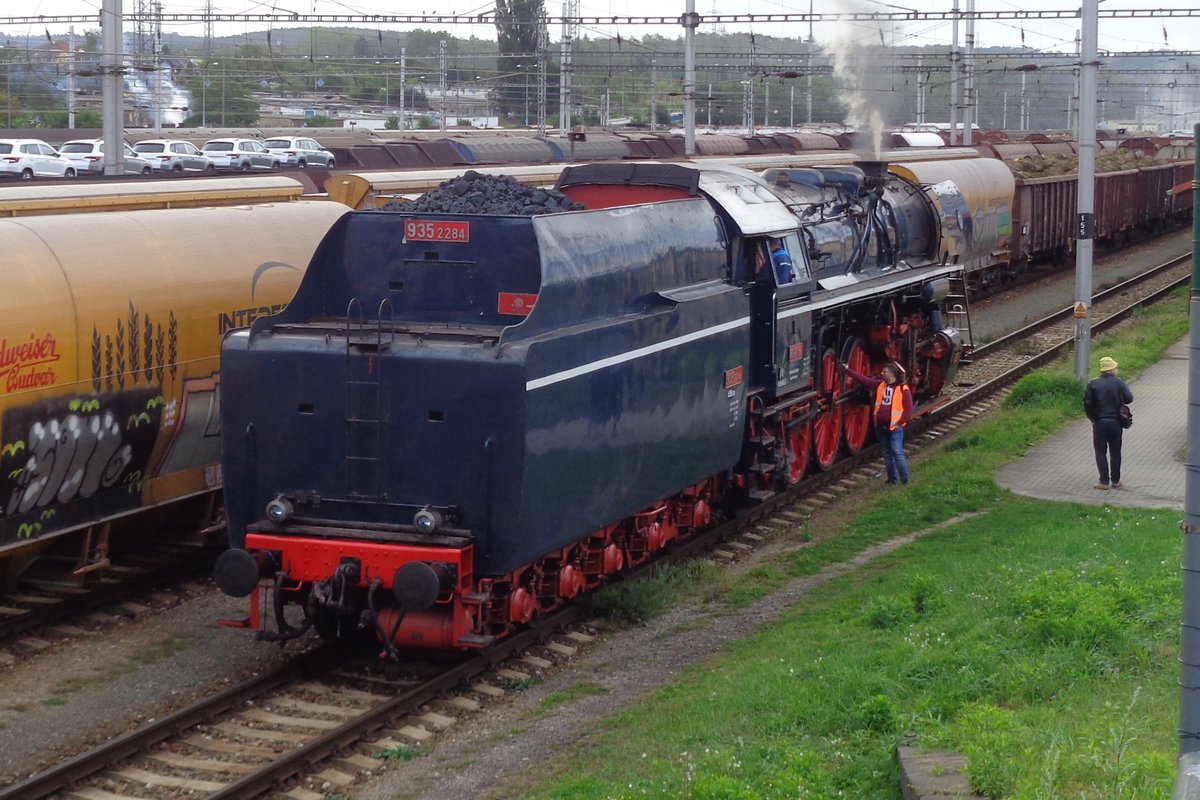 Dampflok 498.104 „Albatros“ fährt durch den Bahnhof von České Budějovice (Budweis) um sich vor den nächsten Zug zu setzen. Aufgenommen beim Bahnhofsfest in Budweis. 22.09.2018