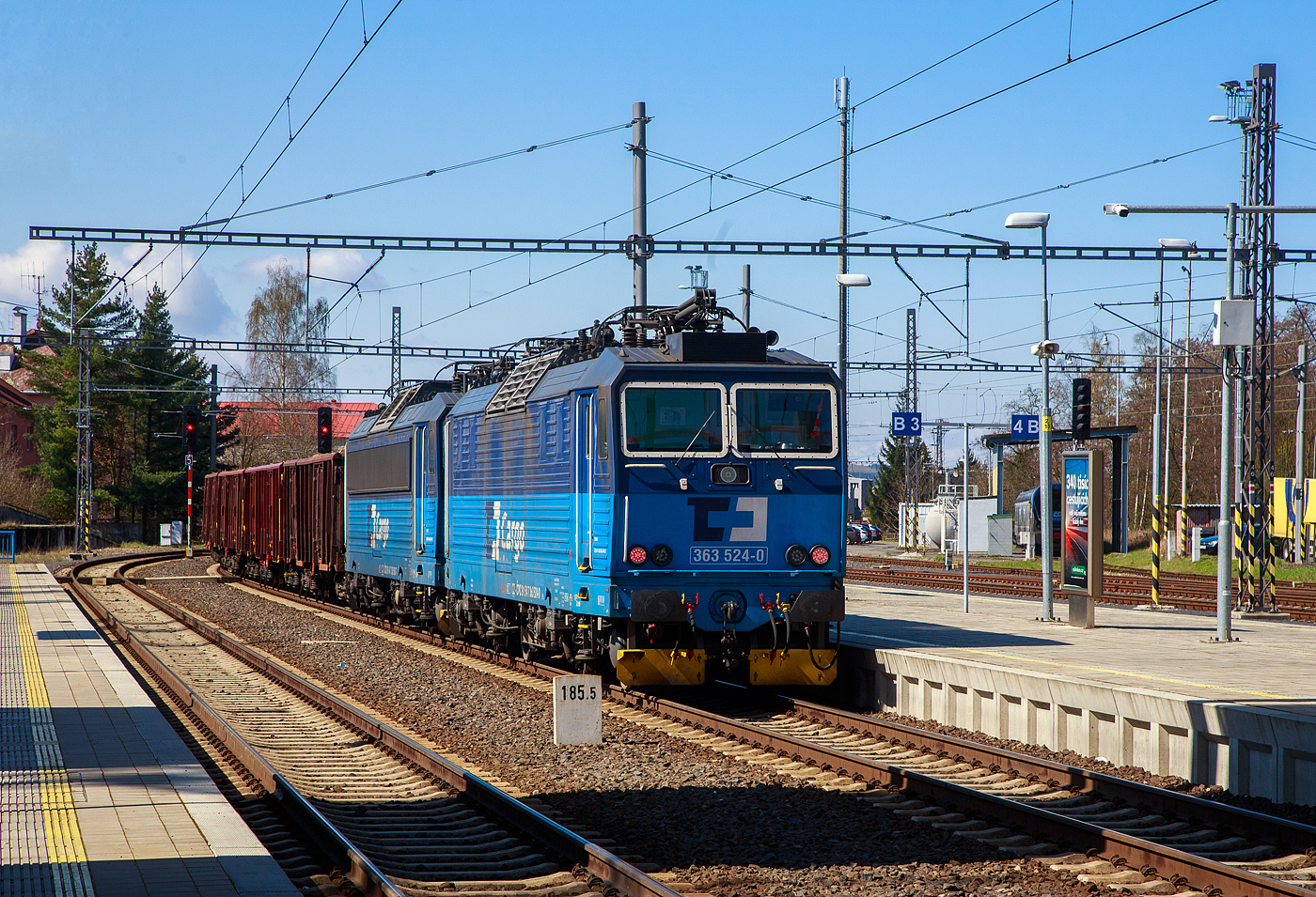 Und links stehen noch die ČD Cargo 363 503-9 (CZ ČDC 91 54 7 363 505-9) mit einem Güterzug und die elektrische Rangierlokomotive ČD 210 021-2 (CZ ČD 91 54 7 210 021-2) mit einem Personenzug.
