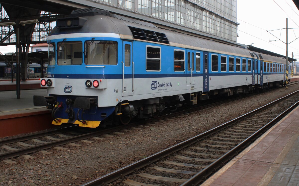 Der Dieseltriebwagen ČD 854 019-7 „Babička“ (Oma) (CZ-ČD 95 54 5 854 019-7) hat am 22.11.2022, mit einem Regionalzug bzw. als Esko Praha (S-Bahn Prag), Praha Masarykovo nádraží (Prag Masaryk Bahnhof) erreicht. Der Zug bestand aus der Komposition ČD 854 019-7, Bdtn756, ČD 854 und Steuerwagen ČD ABfbrdtn795