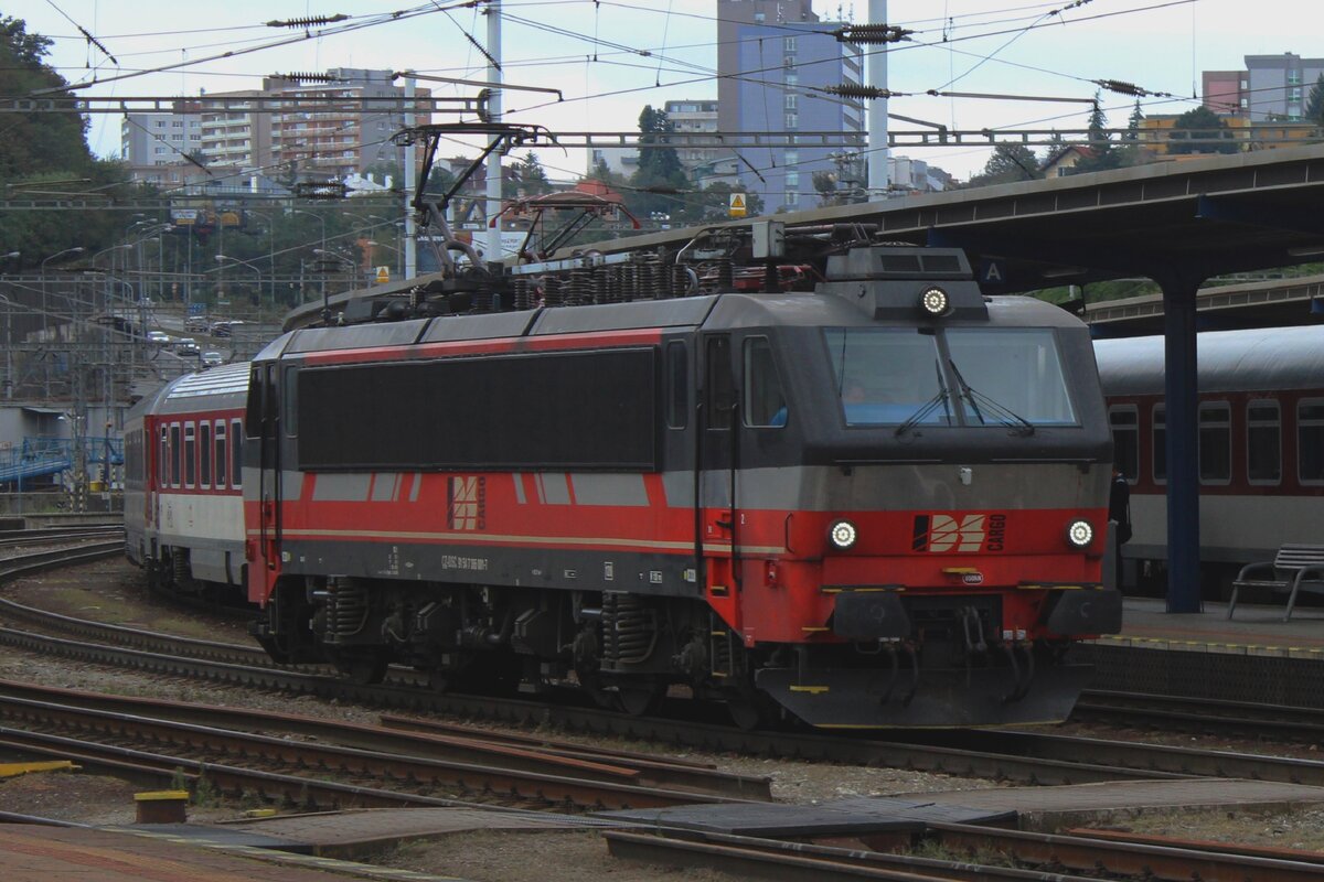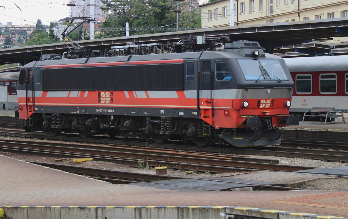 IDS Cargo 365 001 ist einer ex-NMBS/SNCB HLE12 und durchfahrt in aller Rühe am 17 September 2024 Bratislava hl.st. auf den Weg nach Bratislava-Raca. Das Bild wurde vom Bahnsteig 1 mit etwas zooming gemacht. Leon Schrijvers