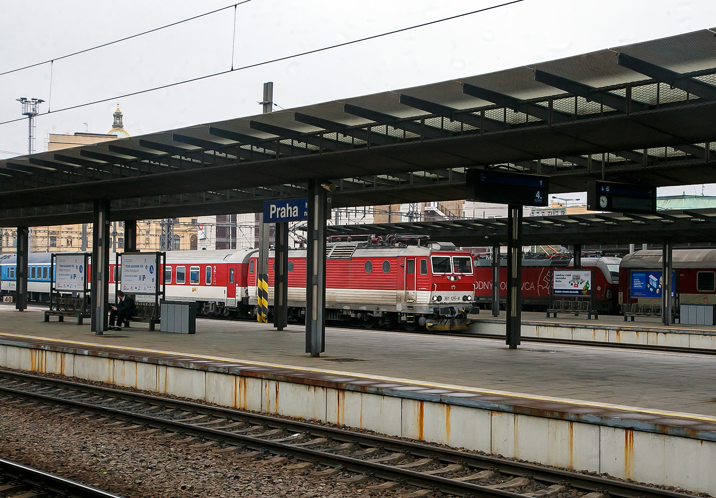 Die ZSSK 361 125 -8 (91 56 6 361 125-8 SK- ZSSK) erreicht am 23.11.2022 mit einem EC den Hauptbahnhof Prag (Praha hlavní nádra¸í). Die Zweisystemlokomotive (3kV DC / 25kV 50 Hz.AC) wurde aus der 3 kV-Gleichstromlokomotive ex ZSSK 162.031-9, ex ´SR 163.119-1, ex ČSD BR 499.3 umgebaut.