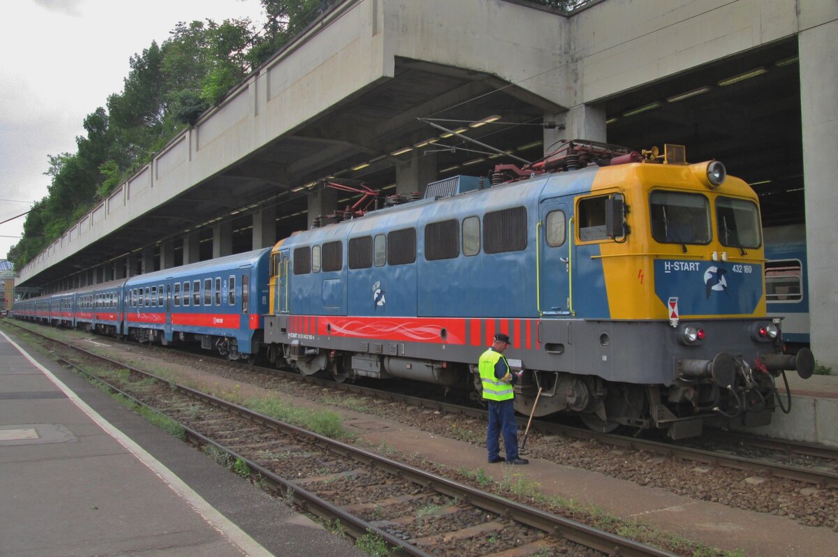"Mal kücken" denkt der Lokführer von 432 160 am 6 Mai 2016 in BUdapest Nyugati bevor deren Schwalbe-Schnellzug abfahren soll.