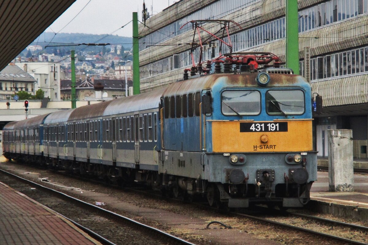 Mit ex-DR Wagen steht 431 191 am 7 Mai 2017 in Budapest-Delí.