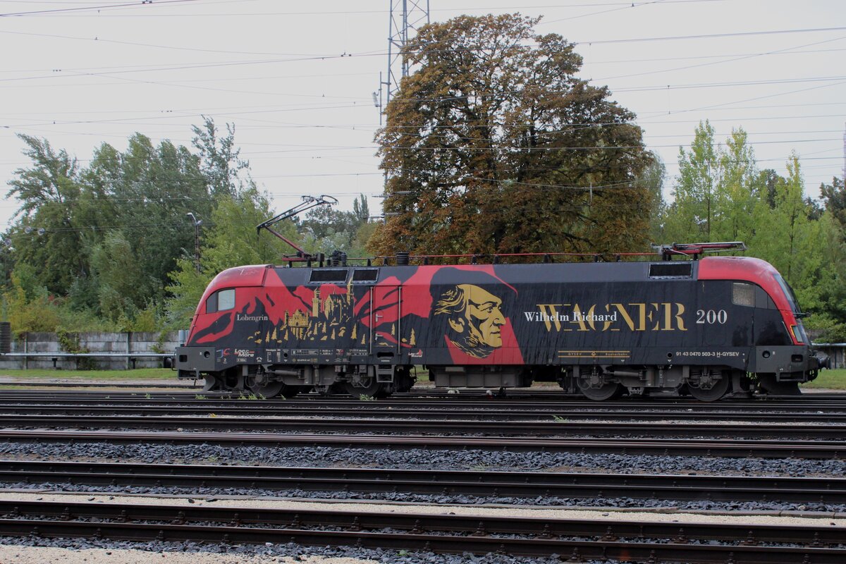 An ganz verregneten 16 September 2024 steht GySEV 470 503 noch immer in Lohengrin/Wagner Farben in Sopron.